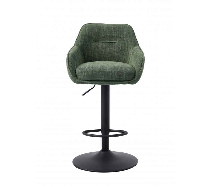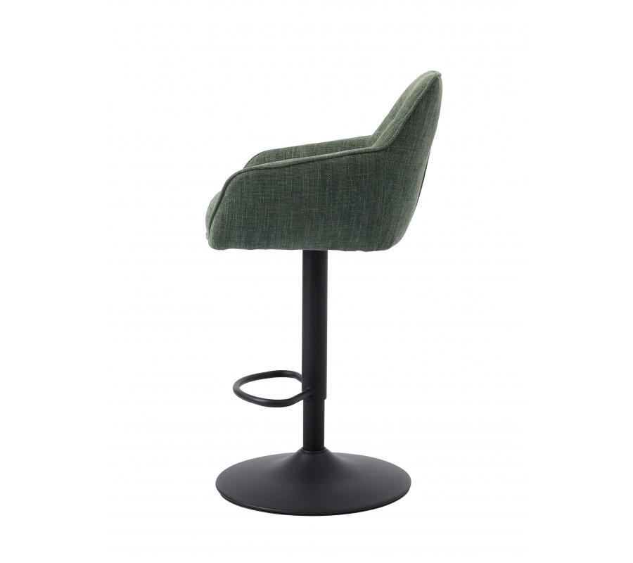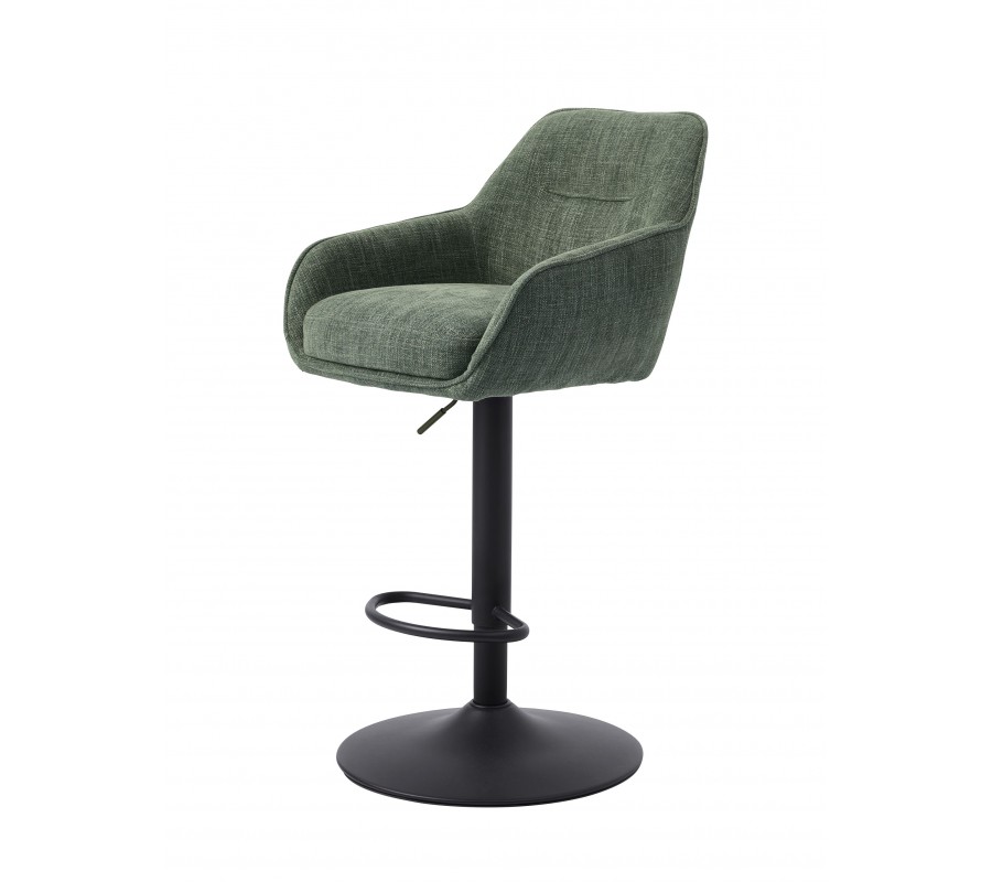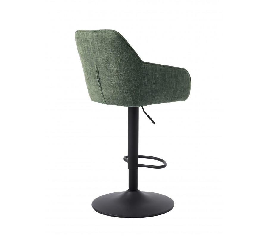 Dizajnová škandinávska barová stolička Egon so šalviovým zeleným poťahom a čiernou výškovo nastaviteľnou nohou 110 cm
