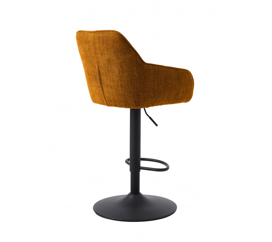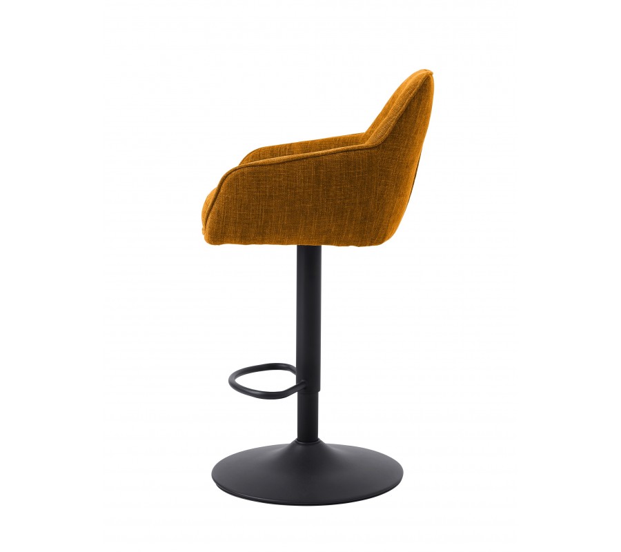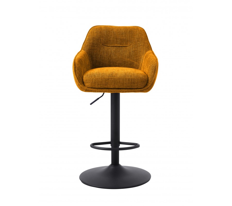 Moderná škandinávska výškovo nastaviteľná barová stolička Egon s horčicovým žltým zamatovým poťahom a čiernou nohou 110 cm