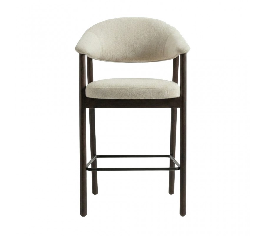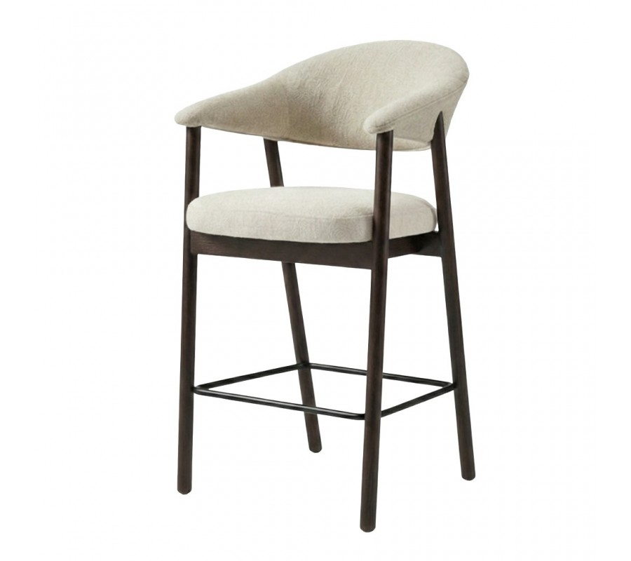 Moderná barová stolička Bodil s tmavou hnedou drevenou konštrukciou a krémovým čalúneným sedadlom a opierkou 104 cm