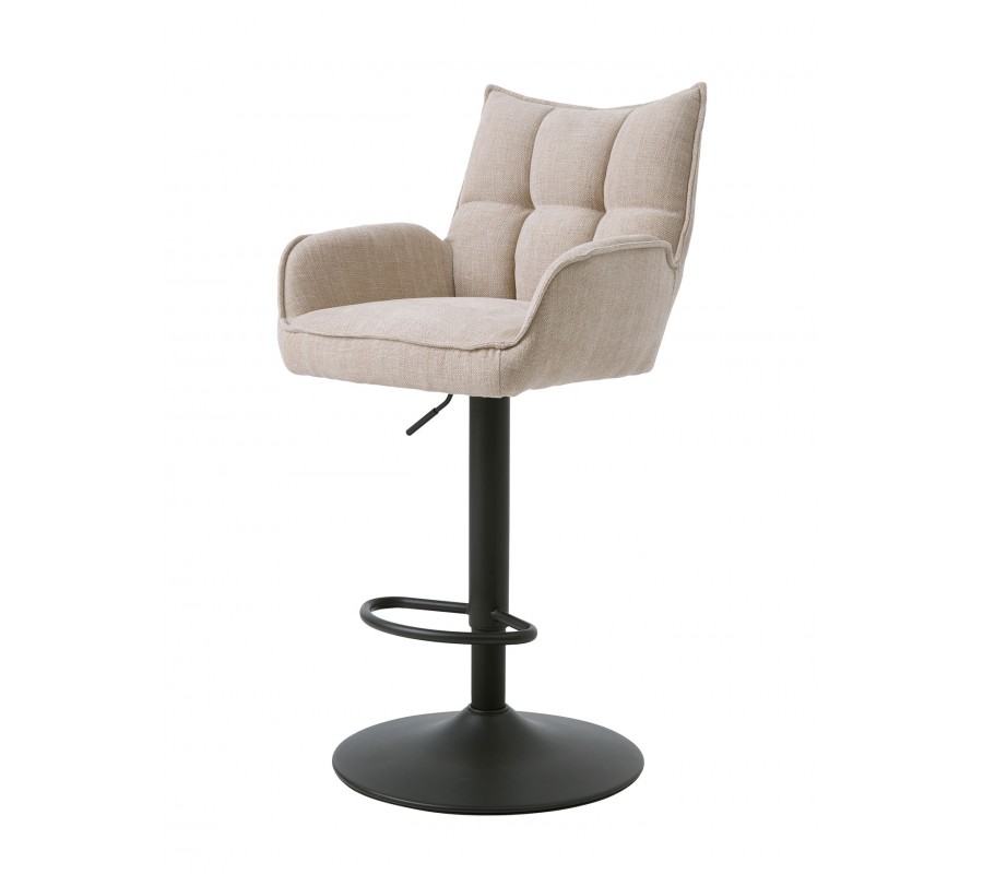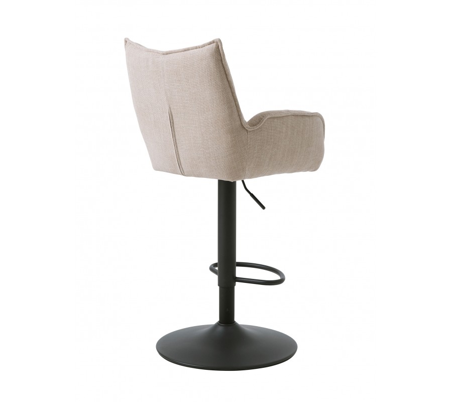 Škandinávska béžová barová stolička Laerke so ženilkovým poťahom a opierkami na ruky s nastaviteľnou čiernou nohou 99-114 cm