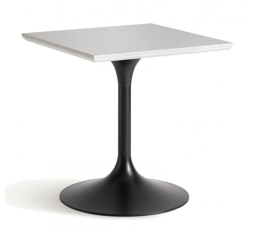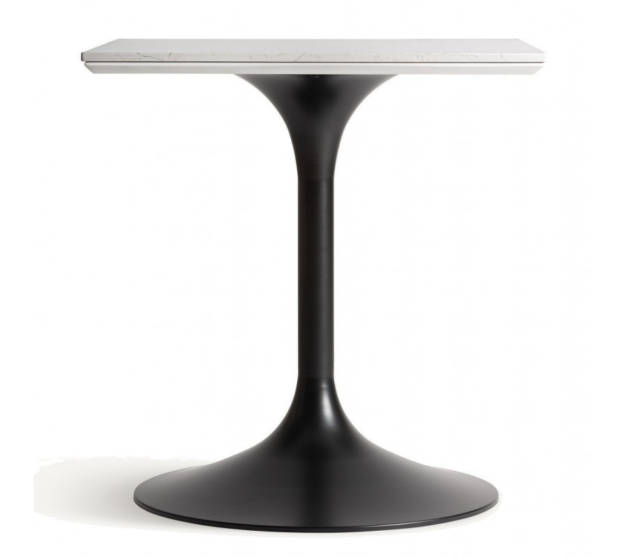 Art deco štvorcový kovový barový stôl Lebi s hladkou oblou čiernou nohou s vrchnou porcelánovou bielou doskou 75 cm