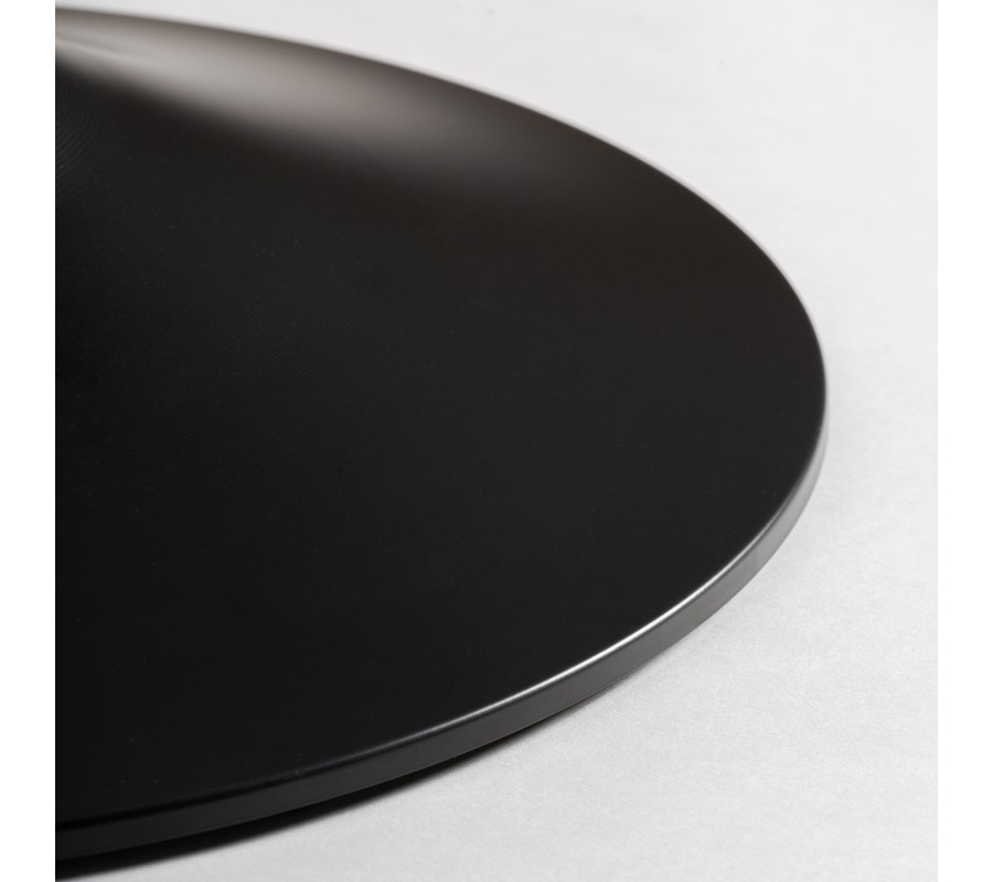 Glamour barový stôl Lebi je sofistikovaným dizajnovým kúskom, ktorý spája eleganciu art deco štýlu s moderným minimalizmom. Dominantným prvkom je jeho výrazná centrálna noha z kovu v čiernej farbe, ktorá má plynule oblé línie a zužuje sa smerom nahor, čím vytvára dynamický a harmonický tvar. Noha je zakončená stabilným okrúhlym podstavcom, ktorý zaručuje pevnú oporu a dodáva stolu jemný industriálny nádych.