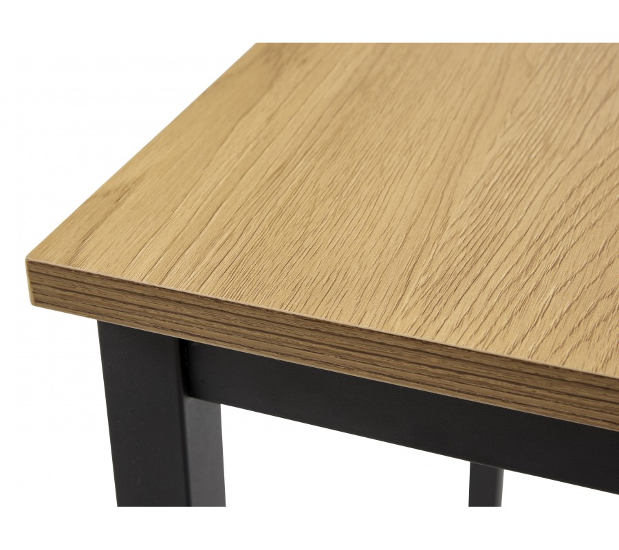 Vrchná doska má štvorcový tvar a je vyrobená z dyhy v svetlom hnedom prírodnom dekore duba. Povrch je ošetrený melamínovou vrstvou, ktorá zvyšuje odolnosť voči poškriabaniu, teplu aj vlhkosti. Jemná kresba dreva pôsobí prirodzene a vytvára teplý akcent ku kovovovej konštrukcii.