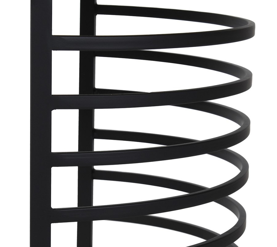 Konštrukcia je vyrobená z kovu v matnom čiernom prevedení a jej rovné geometrické línie pôsobia moderným dojmom. Rámy dosiek sú prepojené štyrmi vysokými čiernymi nožičkami. V spodnej časti sú ukončené kolieskami a vo vrchnej časti sa každá dvojica na strane spája v oblúku kopírujúcom tvar dosky. Rovnaké horizontálne poloblúkové prvky vypĺňajú obe strany konštrukcie a vytvárajú tak štýlový industriálny vizuál.