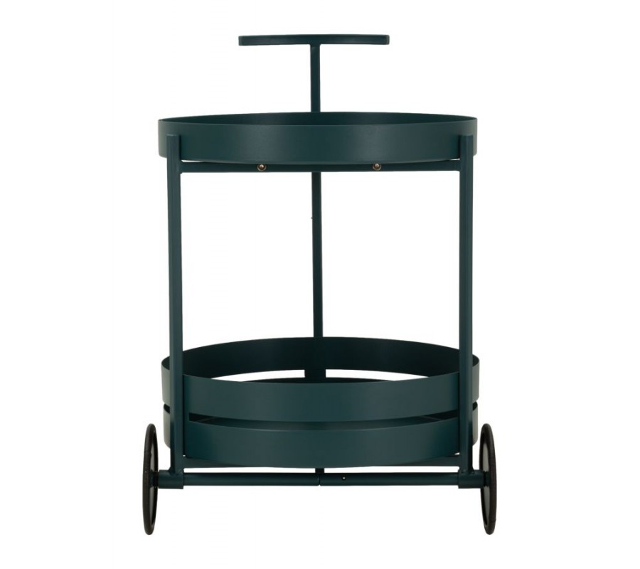 Moderný okrúhly kovový modrý servírovací vozík Satre s policou na dvoch kolieskach 61 cm