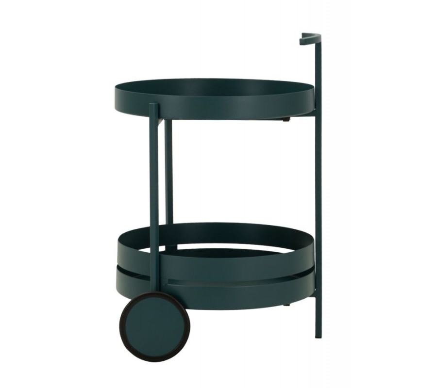 Moderný dizajnový servírovací stolík Satre v elegantnej modrej farbe je výrazným a zároveň praktickým doplnkom interiéru, ktorý spája funkčnosť s čistým moderným dizajnom. Je vyrobený z kovu a vyniká okrúhlym tvarom, minimalistickými líniami a premyslenými detailmi.