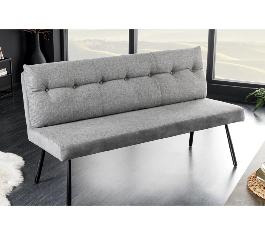 Industriálna svetlosivá trojmiestna lavica Harlow s čalúneným vankúšom a kovovými čiernymi nožičkami 160 cm