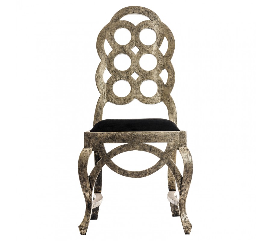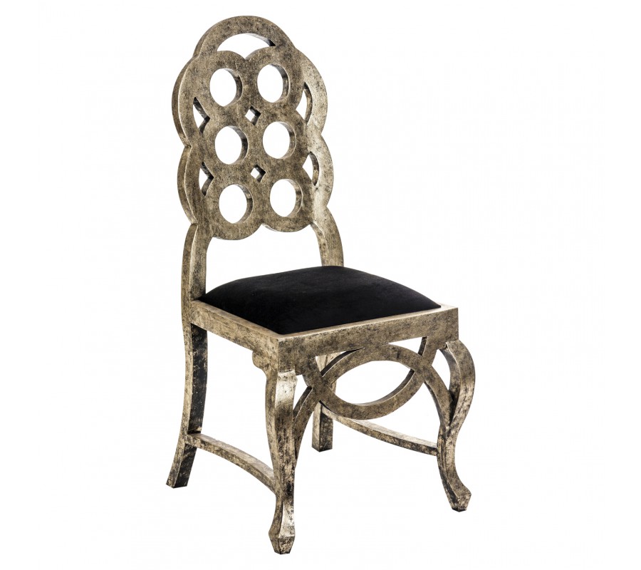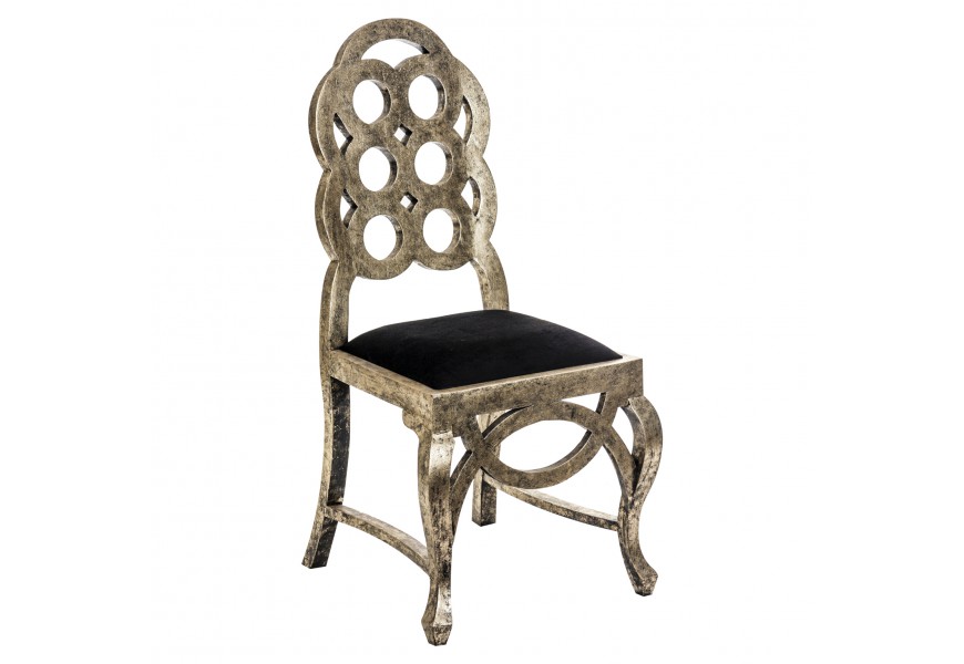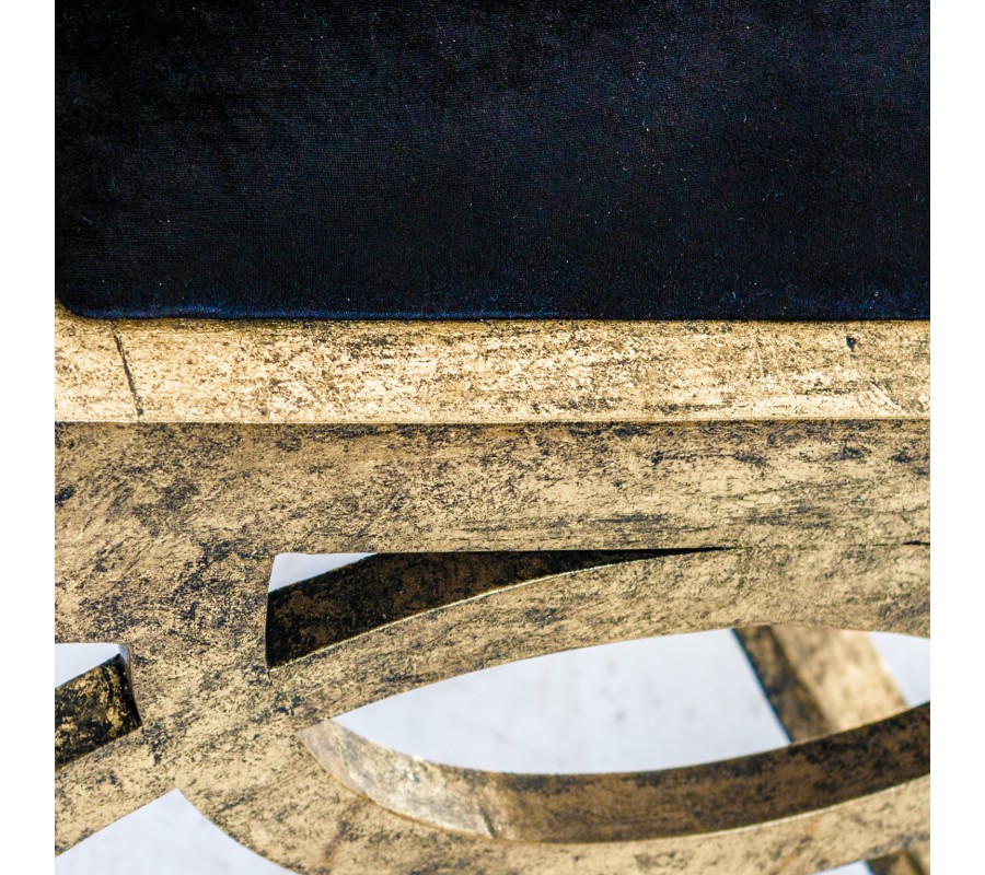 Luxusná stolička DORADA zaujme predovšetkým svojim dozlata sfarbeným, dreveným telom, ktoré nesie klasické prvky art-deco štýlu. Konečný, neprehliadnuteľný vzhľad stoličky dotvára krásne, zamatové sedadlo a štýlová, výrazná patina pokrývajúca celé jej telo. Dodajte svojmu interiéru nádych luxusu v podobe tejto stoličky, ktorá upúta pohľady každej návštevy.