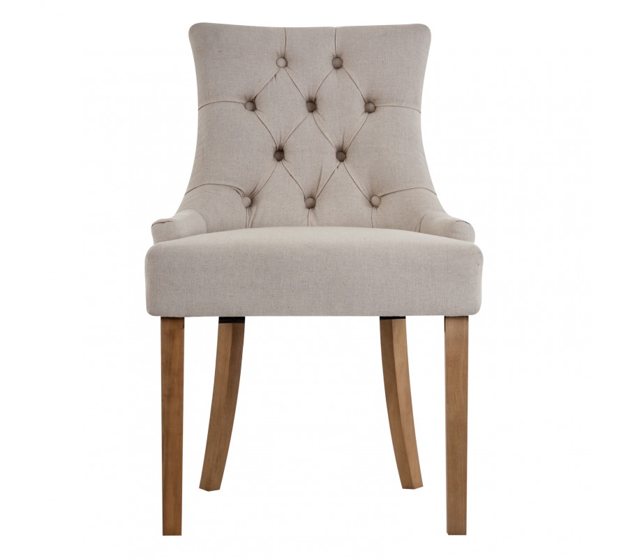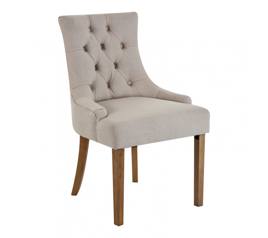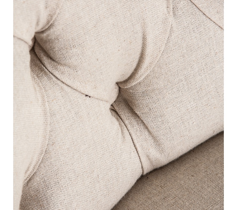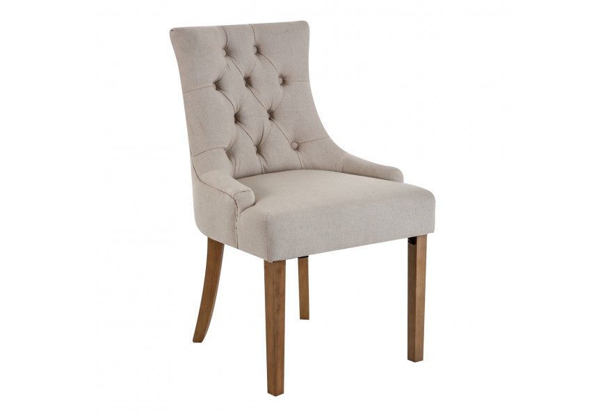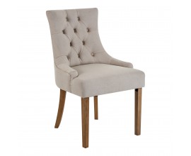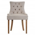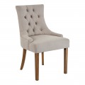 Stolička z jedľového dreva s bavlneno-polyesterovým poťahom v tmavo hnedej farbe.