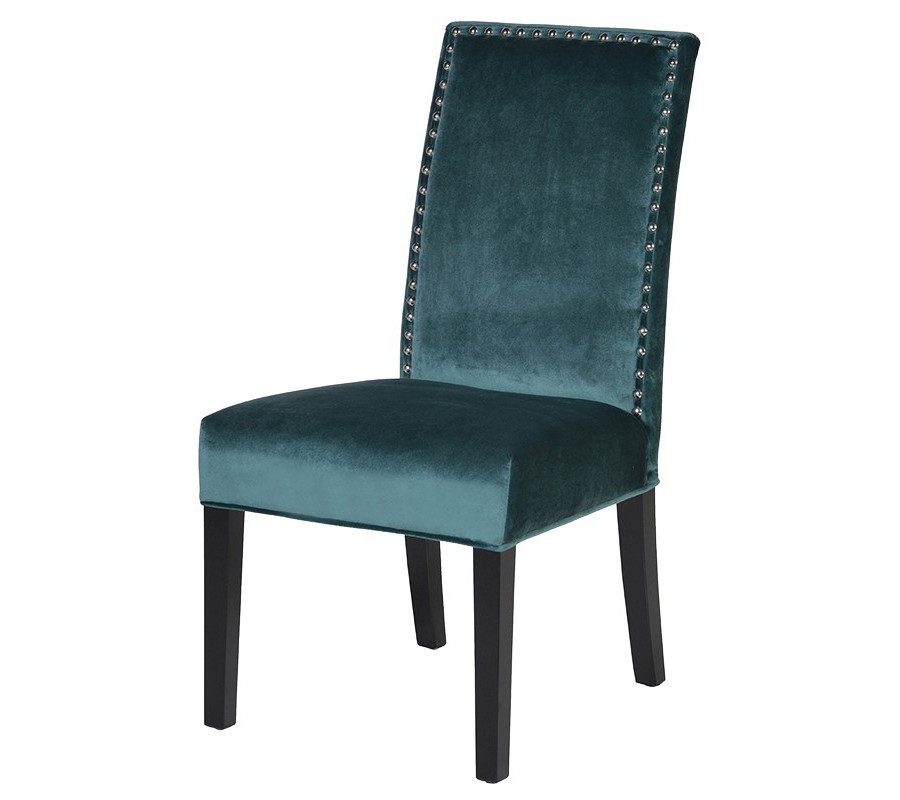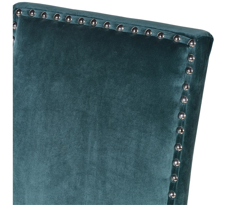 Exkluzívna jedálenská stolička Lucienne je tým pravým doplnkom do každého barokovo či zámocky ladeného interiéru. Čalúnenie krásne tmavotyrkysovej farby pôsobí skutočne luxusne a vášmu domovu dodá honosný nádych. Nohy stoličky sú z kvalitného masívneho dreva v čiernej farbe, ktorá pekne kontrastuje so žiarivým poťahom. Dá sa hravo kombinovať s farbami ako tmavá modrá, sivá, čierna či biela. Dizajnová aplikácia v podobe kovových cvokoch na okrajoch pohodlného, vysokého operadla, je taktiež veľmi zaujímavým prvkom umocňujúcim barokový dojem. Stolička Lucienne je skutočným prepojením kvality a zaujímavého vzhľadu, ktorá môže ohobatiť aj váš interiér!