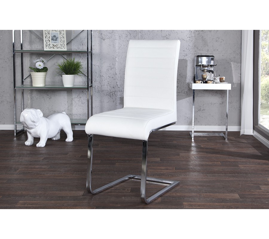 Luxusná moderná jedálenská stolička Stuart v sebe spája exkluzívny dizajn s vysokým komfortom sedenia. Kvalitná umelá koža v dokonalej harmónii s ušľachtilým chrómovaným rámom Vás upúta na prvý pohľad. Konštrukcia rámu je hranatá, čo zabezpečuje vysokú pevnosť a dlhodobú životnosť. Ideálna do modernej jedálne. Rozmery (pribl.): 45 cm x 100 cm x 50 cm (ŠxVxH) Farba: biela Materiál: kov-chróm / eko koža Napalon. Zloženie referenčného materiálu: 100% polyuretán
