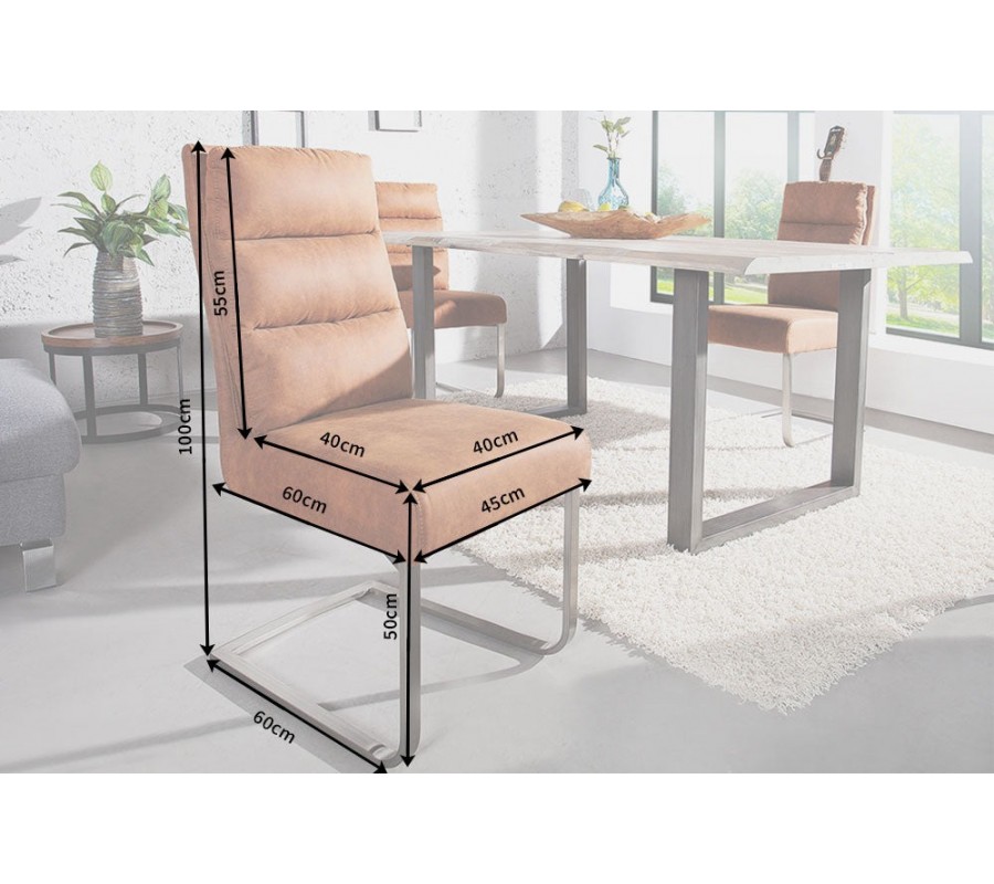 Štýlová komfortná jedálenská stolička Comfort Vintage ponúka perfektnú kombináciu elegantného vidieckeho štýlu klasickej koloniálnej stoličky a pohodlie moderného hojdacieho kresla. Rozmery (pribl.): 45 cm x 100 cm x 60 cm (ŠxVxH) Rozmery sedadla: 40 cm x 50 cm x 40 cm (ŠxVxH) Operadlo Výška: 55cm Farba: vintage svetlo hnedá Materiál: mikrovlákno zloženie materiálu krycí materiál: 100% polyester leštený rámik z nerezovej ocele
