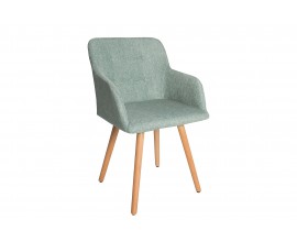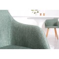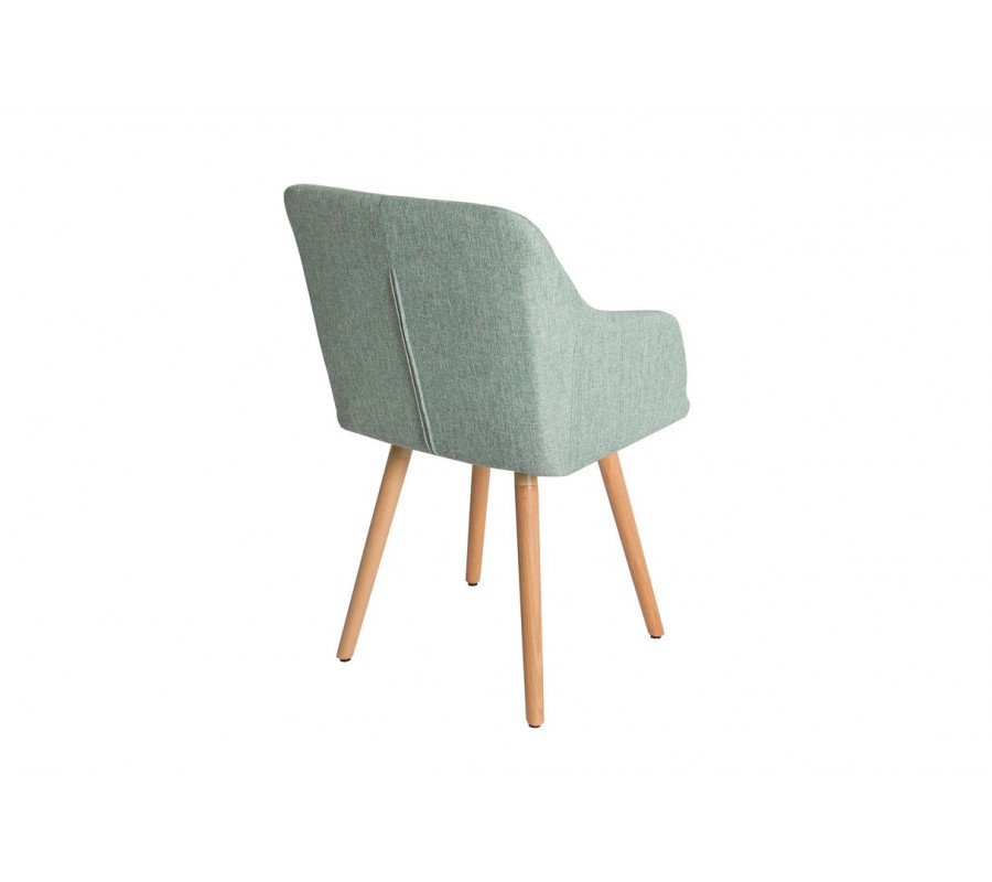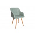 Škandinávska čalúnená stolička Scandinavia so svetlou zeleno-modrou textíliou a drevenými nožičkami s výraznou kresbou 85 cm