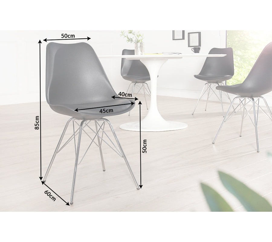 Stolička Scandinavia výborne doplní modernú jedáleň, kde ju môžete skombinovať so skleneným stolom či s nábytkom s chrómovými detailmi. Hodí sa tiež k štýlovým retro kúskom v neutrálnych odtieňoch bielej, sivej alebo čierne, no univerzálnu farebnú kombináciu čiernej a chrómu môžete skombinovať aj s pestrejšími doplnkami v škandinávskom štýle.