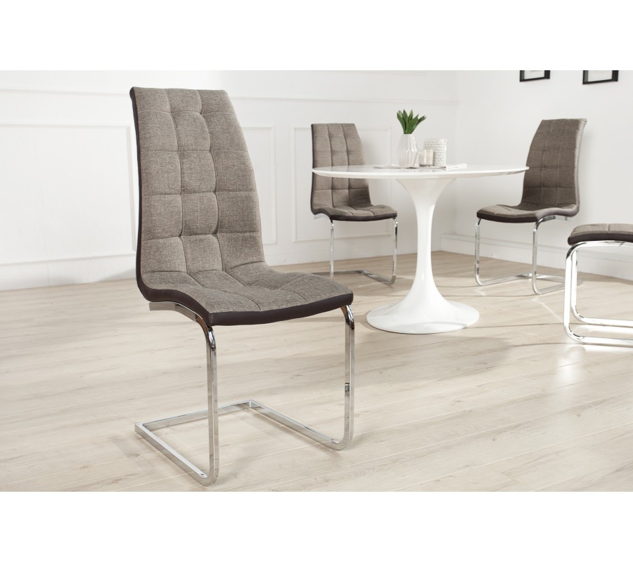 Dizajnová moderná jedálenská stolička London je elegantná, štýlová a inovatívna. Stolička je určená pre všetkých fanúšikov klasického a štýlového dizajnu. Komfortné čalúnenie je ideálne pre dlhé a pohodlné sedenie. Konsolidovaná a dokonale zaoblená stolička je potiahnutá syntetickou kožou zo zadnej strany a sedák je čalúnený hnedou tkaninou. Kostru tvorí chrómovaný kovový rám. Či už v jedálni alebo kancelárií vynikne vďaka svojmu nadčasovému dizajnu. Rozmery: 40cm x 105cm x 60cm (ŠxVxH) Rozmery sedadla: 40cm x 50cm x 40cm (ŠxVxH) Výška opierky: 60cm