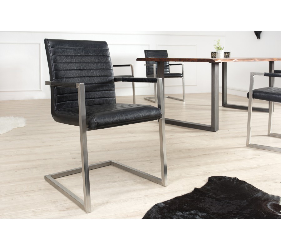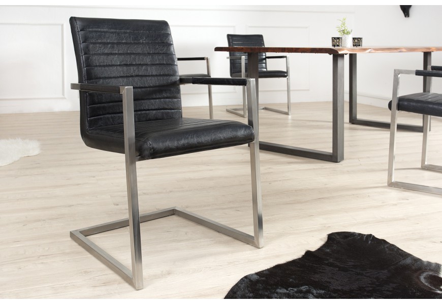 Retro stolička Imperial čierna s kovovou podstavou je ideálnou voľbou do moderne a industriálne zariadených interiérov. Elegantné prešívanie spolu s osobitým spracovaním vnesie do domácnosti nádych prepychu. Čalúnenie stoličky je zhotovené z polyuretánu. Rozmery: 55cm x 90cm x 60cm, sedák: 45cm x 50cm x 40cm, výška opierky: 50cm.