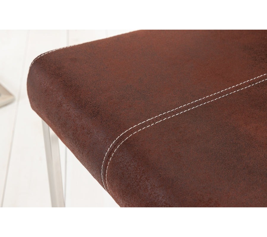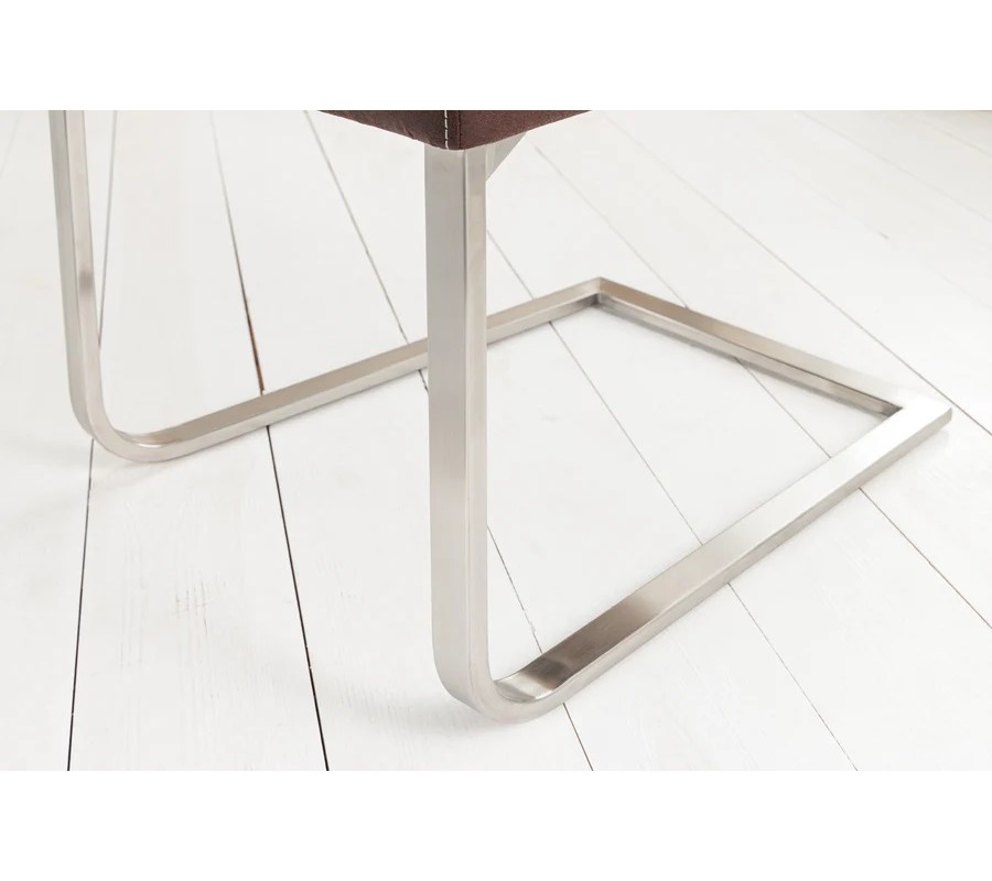 Moderná kožená hnedá konzolová jedálenská stolička Samson s čalúnením a kovovou U podstavou bez opierok 95 cm