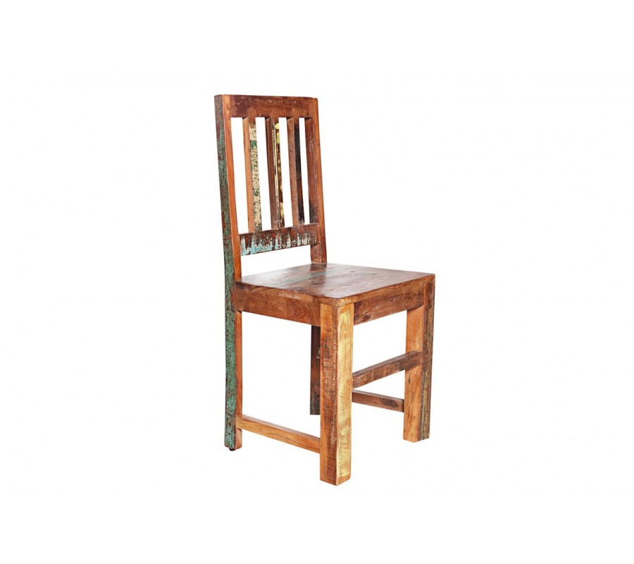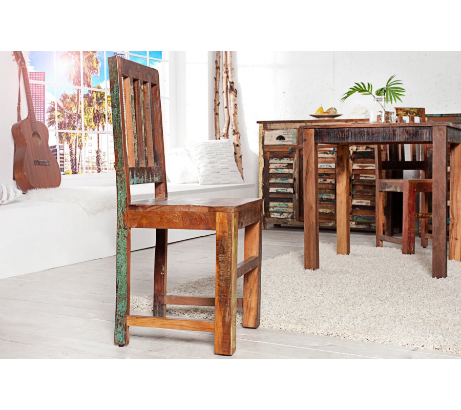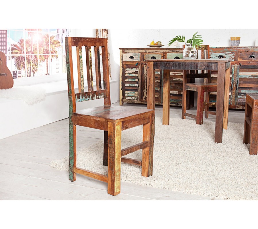 Etno masívna jedálenská stolička Jakarta je vyrobená z recyklovaného dreva, ktoré v sebe nesie príbeh a jedinečný charakter. Povrch je ošetrený lakom, ktorý zvýrazňuje výraznú štruktúru dreva.