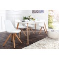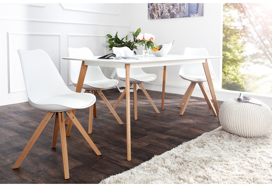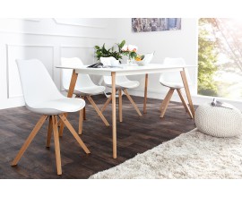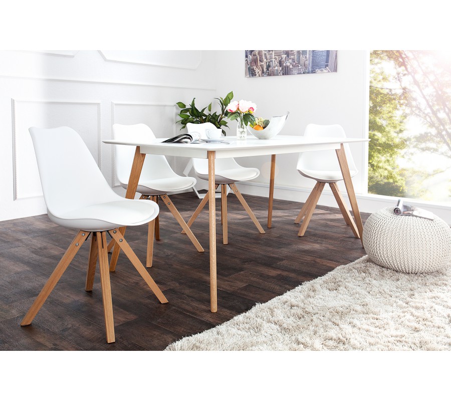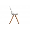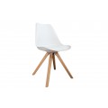 Dizajnová jedinečná jedálenská stolička Scandinavia je vyrobená v retro štýle a dokonale padne k jedálenským zostavám kolekcie nábytku Scandinavia. Rozmery: 50cm x 86cm x 57cm (ŠxVxH) Sedadlo: 45cm x 50cm x 38cm (ŠxVxH) Sedadlo, ktoré jue vyrobené z plastu je potiahnuté umelou kožou. nožičky stoličky sú vyrobené z masívneho dreva. Nosnosť stoličky je 150kg.