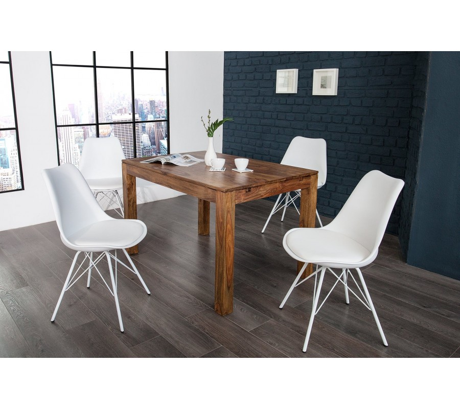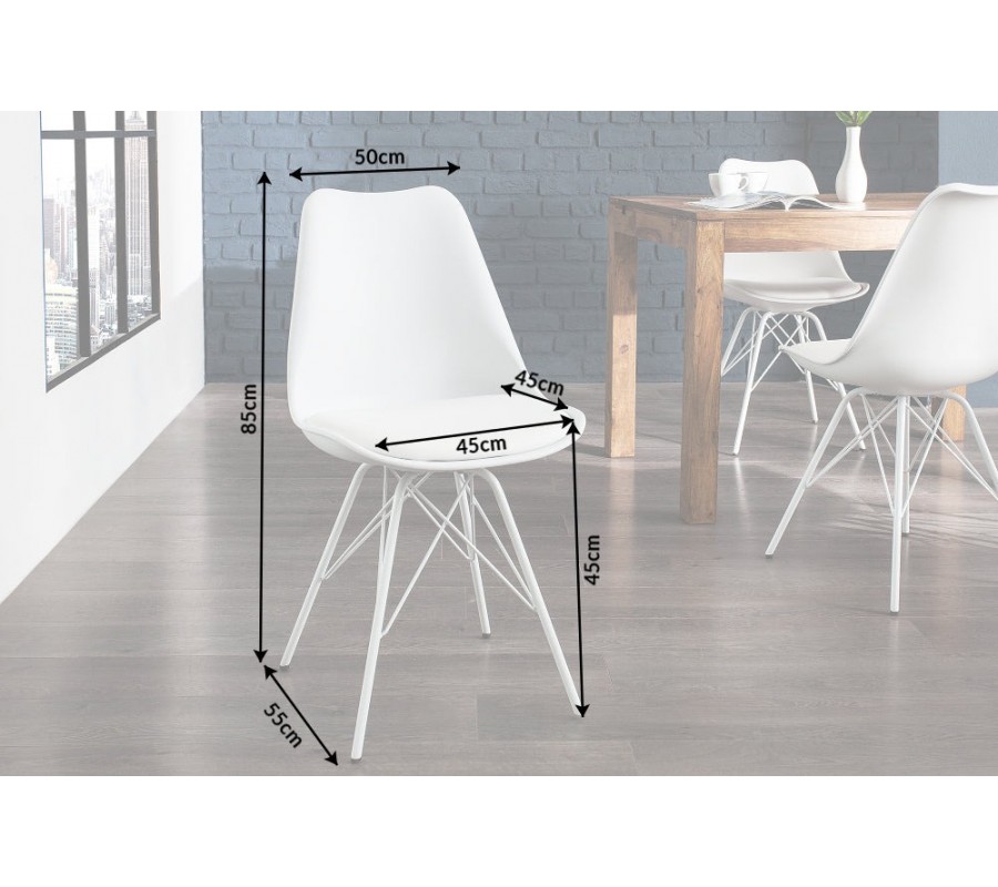 Dizajnová moderná stolička Scandinavia predstavuje čistú dizajnérsku klasiku medzi stoličkami. Jedálenská stolička Vás presvedčí organicky tvarovaným sedákom, ktorý je potiahnutý syntetickou kožou s čistými líniami. Sedadlo je veľmi komfortné, čo zaisťuje dlhé a pohodlné sedenie. Ďalším vizuálnym vrcholom stoličky sú stabilné nohy vyrobené z vysoko kvalitnej ocele.Rozmery: Veľkosť : 50 cm x 85 cm x 60 cm (ŠxVxH) Sedadlo: 45 cm x 50 cm x 40 cm (ŠxVxH).