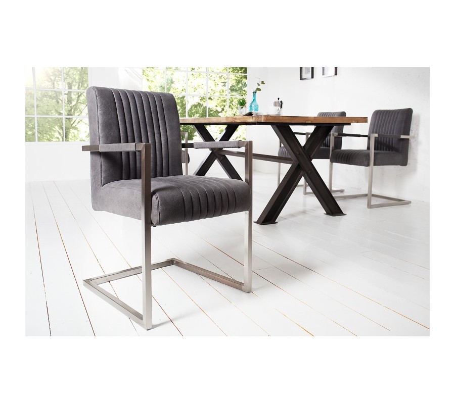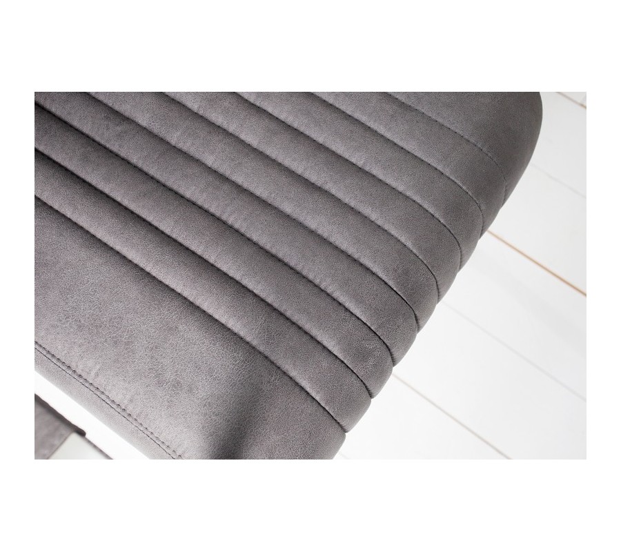 Štýlová stolička v sivej farbe z mikrovlákna je unikátnym kusom nábytku vhodným do moderne zariadených miestností, k pracovným stolom alebo do jedální. Jednoduchý dizajn robí z tejto stoličky vhodnú voľbu do širokej škály interiérov, no najmä do industriálne či retro ladených priestorov. Rám je vyrobený z kvalitnej leštenej ocele potretý ochrannou striebornou vrstvou farby. Príjemnú kombináciu vytvoria s jedálenským stolom s vrchnou doskou z masivneho dreva, ktoré sa so sivou farbou stoličky dopĺňa.