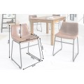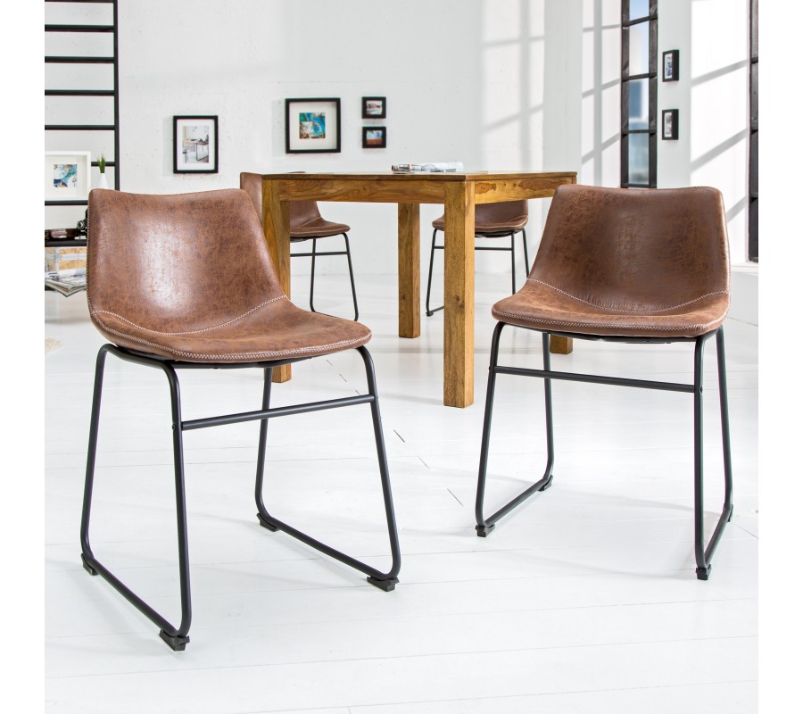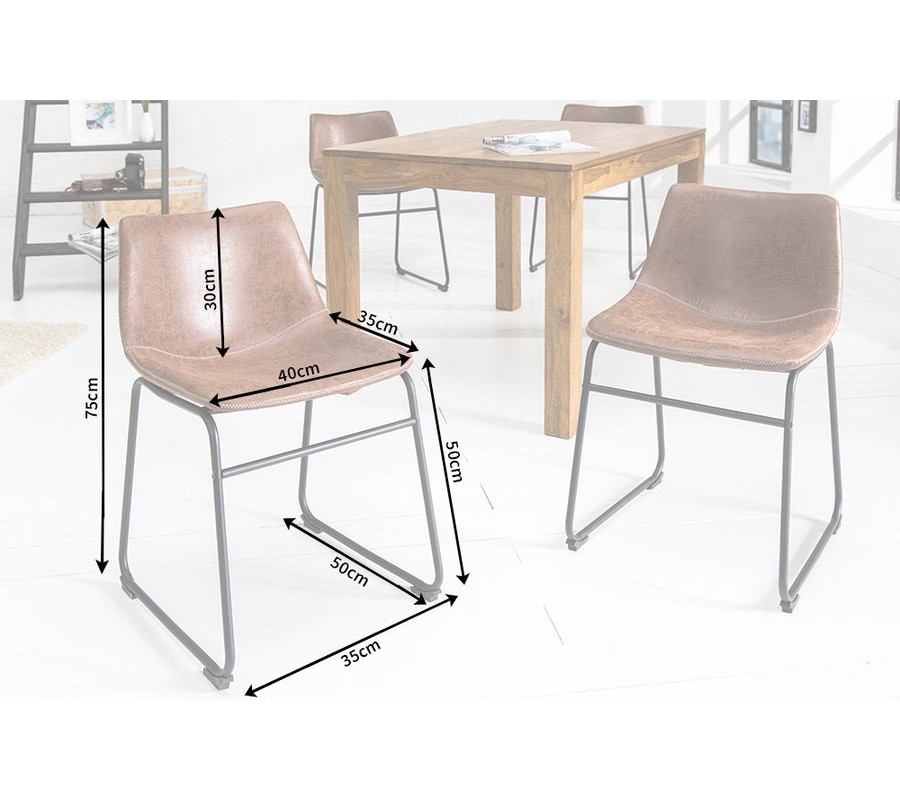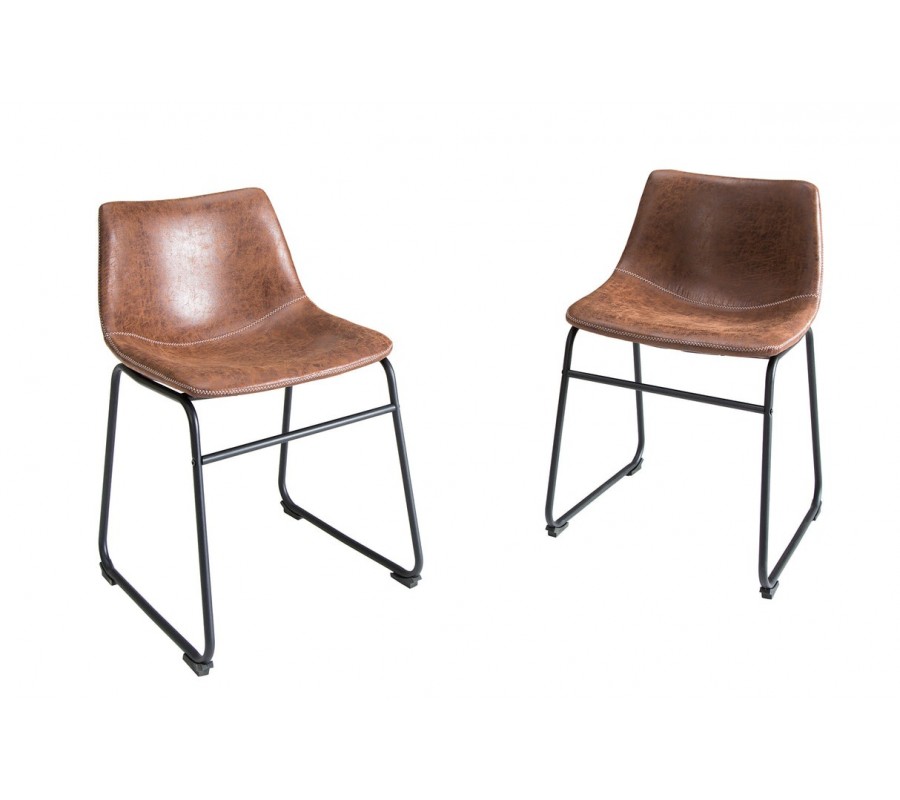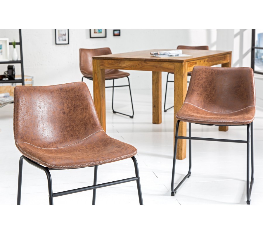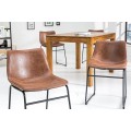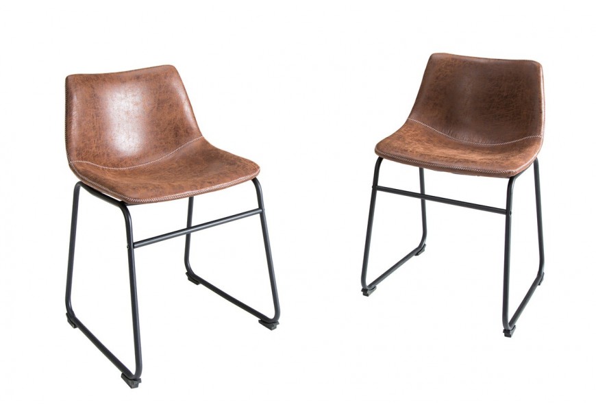 Jedálenská stolička Dingo je výrazným kúskom v duchu industriálneho a vintage štýlu, ktorý zaujme na prvý pohľad svojou kombináciou robustného kovu a patinovaného vzhľadu poťahu. Sedadlo a operadlo sú potiahnuté hnedou eko kožou s popraskanou štruktúrou, ktorá verne imituje vzhľad staršej kože a dodáva stoličke charakter a historizujúci nádych.