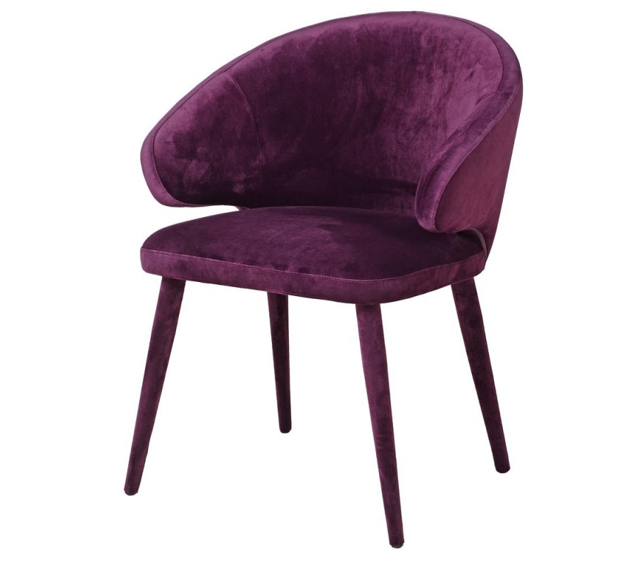 Čalúnená jedálenská stolička Greta je výnimočná luxusným zamatovým čalúnením nie len na sedacej časti, ale aj na svojich štyroch nohách. Mäkké čalúnenie sedadla aj operadla je vykrojené do plynulej krivky, ktorá mu dodáva nestarnúci pôvab a eleganciu. Jediným viditeľným materiálom stoličky Greta je fialový zamat, ktorý môžete kombinovať s naozaj akýmkoľvek materiálom. Fialový odtieň sa nemusíte báť kombinovať ani s výraznými farbami v modrých, zelených, či žltých odtieňoch. Jedálenská stolička Greta skvele doplní elegantný interiér zariadený dreveným nábytkom ale aj extravagantný priestor v Art-deco sťýle, plný kovových odleskov a geometrických tvarov. Jedálenská stolička Greta dokonale doplní vašu jedáleň, spálňu či predsieň, vďaka výraznej elegancii a luxusu je vhodná aj do priestorov hotelov či klubov a podnikov.