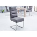 Podnožie tvorí konštrukcia z chrómovaného kovu v tvare lyžín, ktorá je nielen vizuálne atraktívna, ale aj stabilná a odolná. Kovové nohy v striebornom odtieni dodávajú stoličke moderný, mierne industriálny nádych a zároveň ju odľahčujú opticky aj konštrukčne. Je to konzolový typ stoličky.