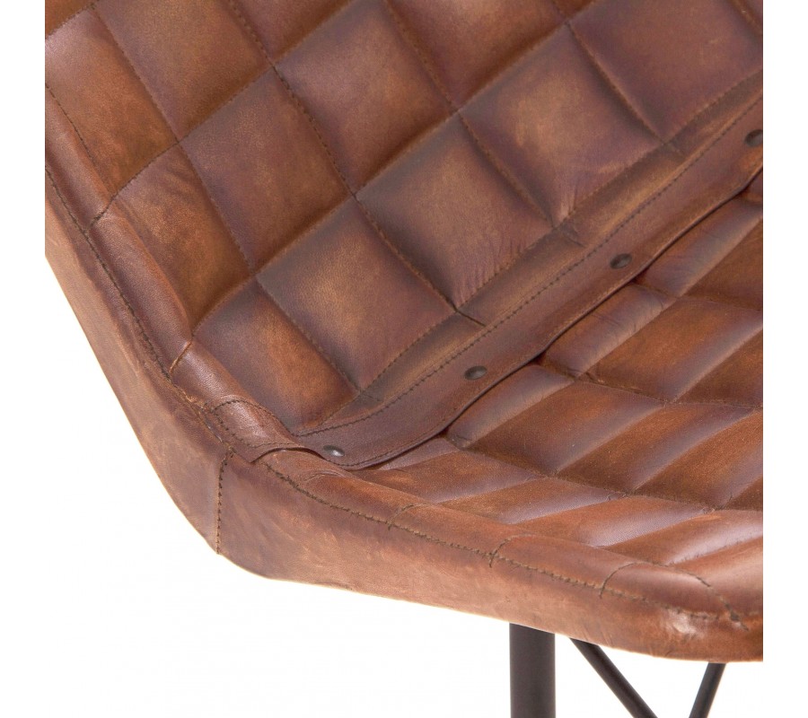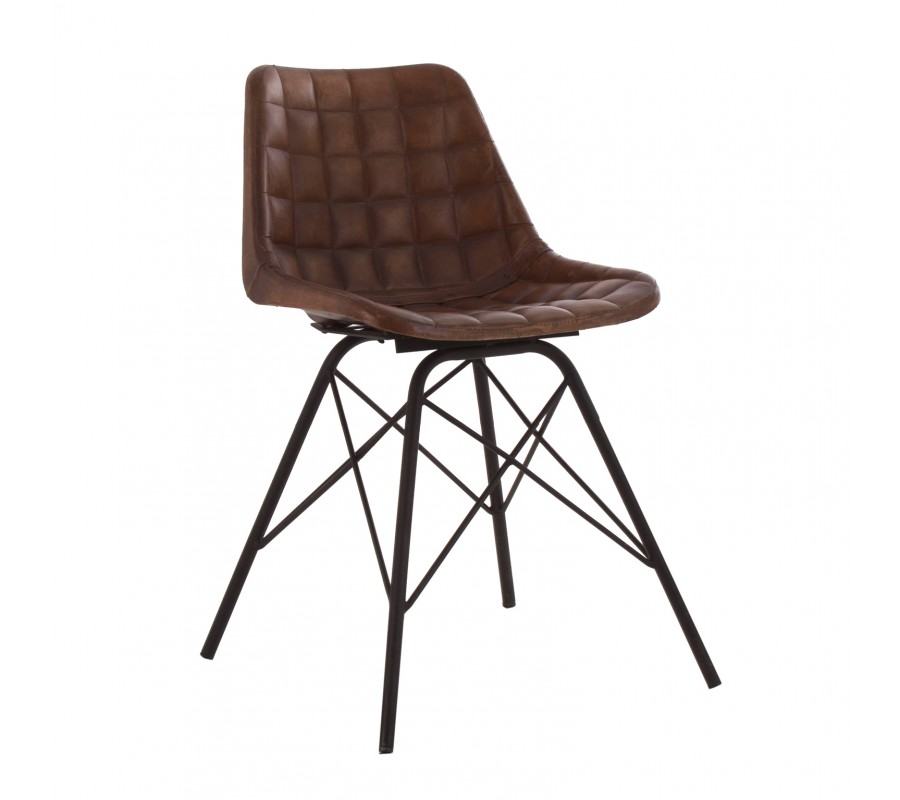 Štýlová vintage stolička MOLD s koženým povrchom, vyplnená penou. Prešívanie vytvára štýlovú štruktúru čalúnenie. Kovový základ.