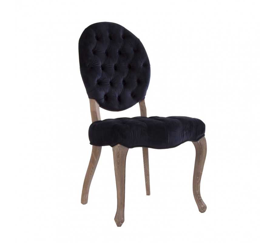 Štýlová zamatová stolička EGER s dreveným základom. Tmavo modrá farba umocňuje jej kúzlo.
