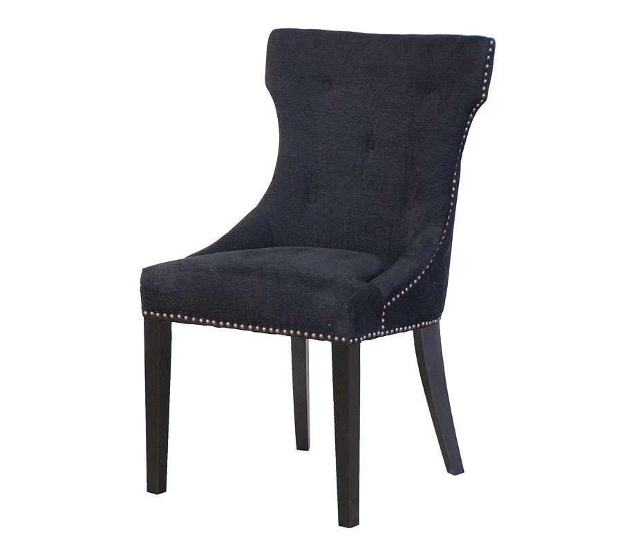 Luxusná zamatová čalúnená čierna jedálenská stolička Satina s vybíjanými nitmi 96 cm