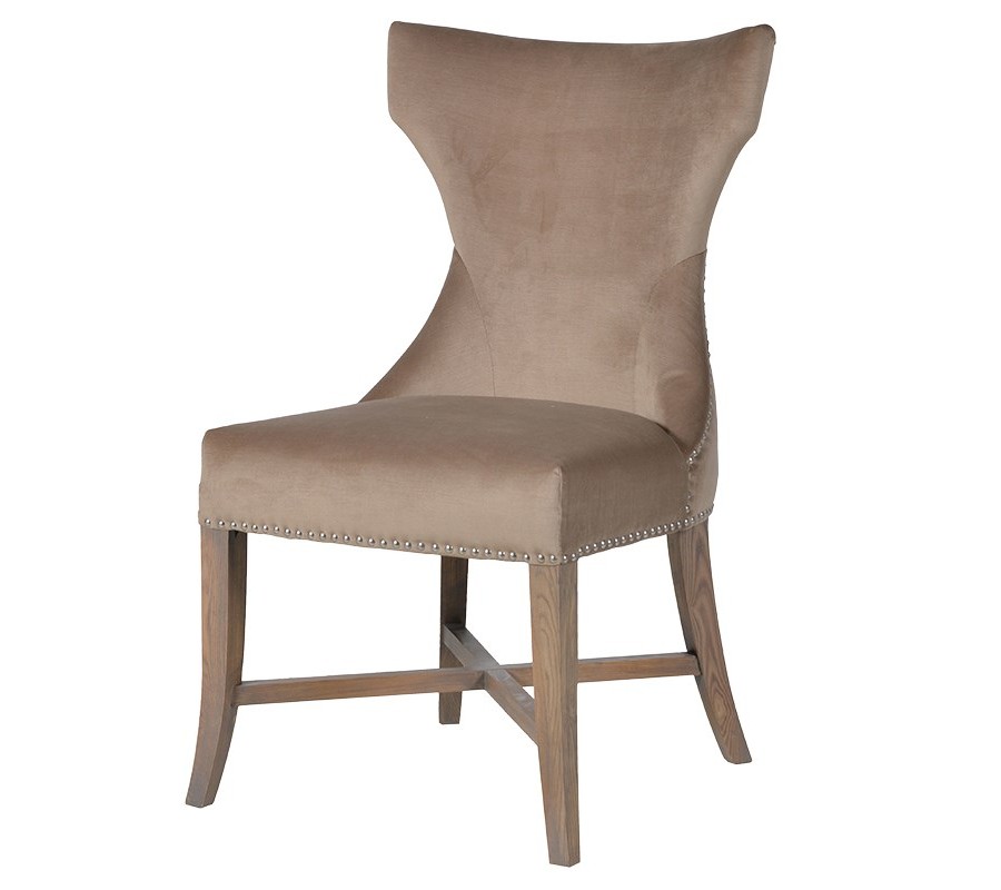 Štýlová čalúnená jedálenská stolička v univerzálnom,béžovom farebnom prevedení s kovovými ozdobnými prvkami sa hodí či už do retro, ale aj do moderných interiérov. Lesklé, zamatové čalúnenie dodá vašej jedálni nádych luxusu.