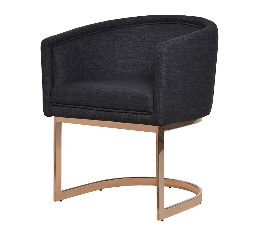Luxusné jedálenské kreslo Chinensis je dokonalým partnerom pre jedálenský stôl Chinensis a spolu dokážu tvoriť nerozlúčiteľné dizajnové kombo. Čierny poťah príjemne kontrastuje s leskom nôh vo farbách ružového zlata. Perfektne zapadne najmä do domovov ladených va rt-deco či inom modernom štýle.