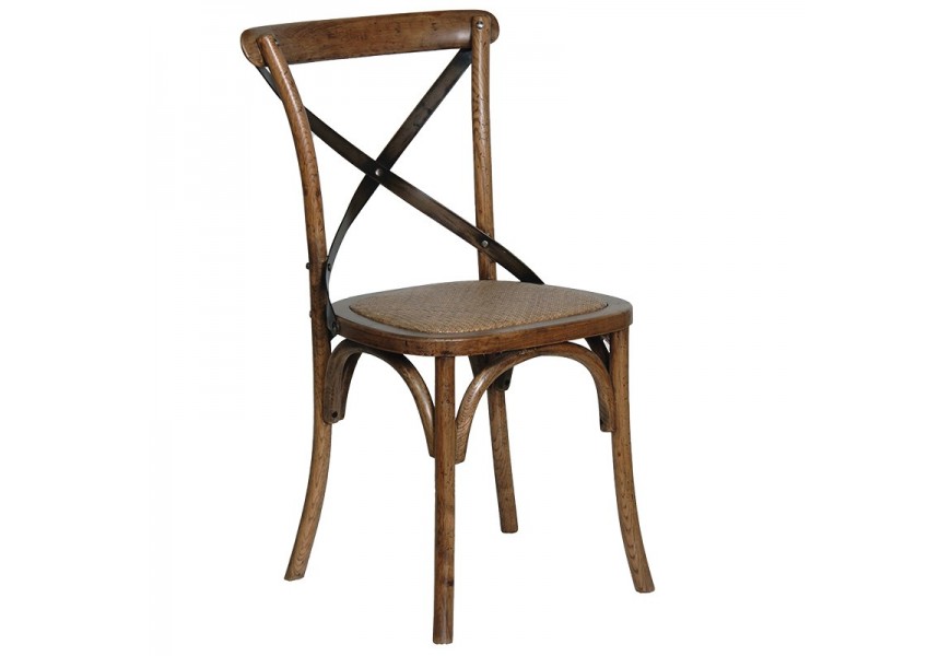 Masívna industriálna jedálenská stolička Country s ratanovým výpletom a opierkou v tvare X hnedá 89 cm
