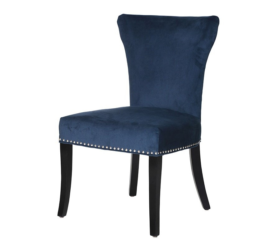 Luxusná moderná čalúnená jedálenská stolička Loretta so zamatovým poťahom v tmavej modrej farbe 88 cm