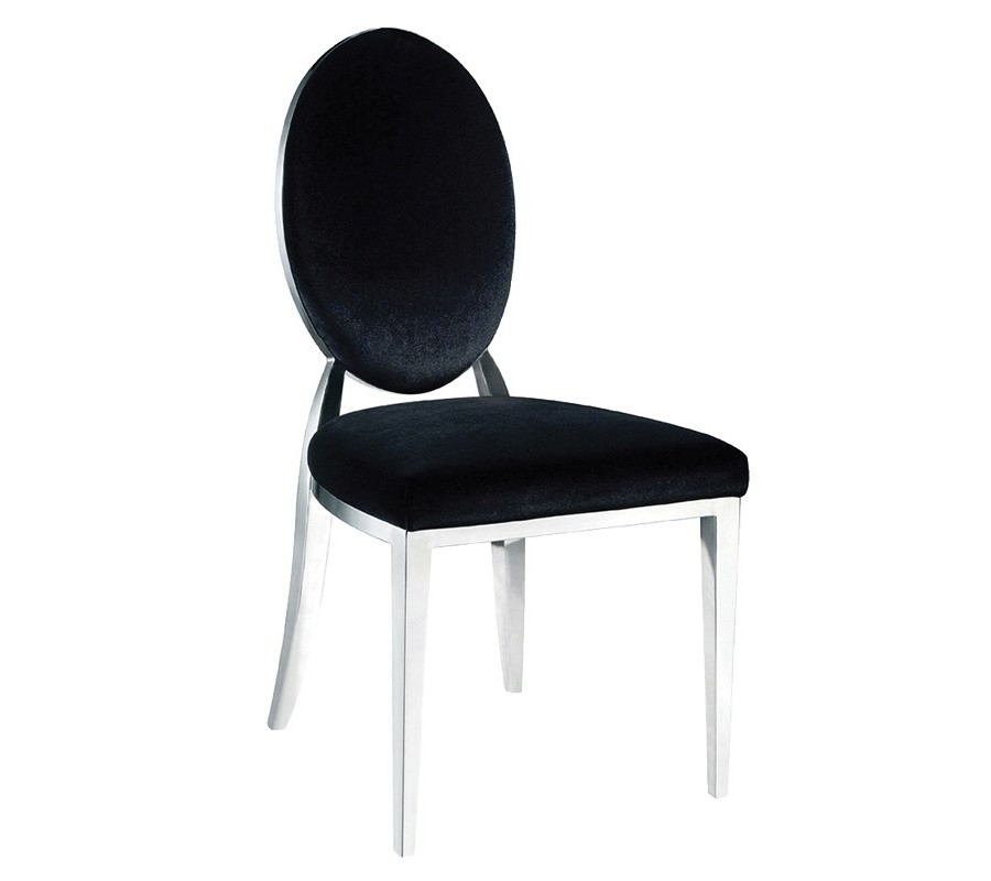 Luxusná a dizajnová jedálenská stolička Piera III je naozaj príkladným predstaviteľom pravého luxusného nábytku. Oválne operadlo pôsobí veľmi nežne a jemne, čo stoličke dodáva ešte väčší nádych elegancie. Vkusné prevedenie máme možnosť vidieť najmä na kombinácii čierneho zamatového poťahu a pochromovaných strieborných nôh i obručí. Čisté línie a vznešenosť stoličky Piera III zapadne najmä do interiérov zariadených luxusnými povrchmi a materiálmi, akými sú zamat, lesklé kovy či koža.