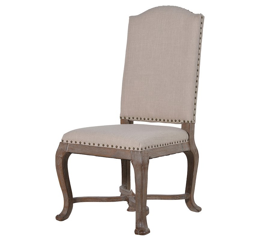 Vidiecka nadčasová béžová jedálenská stolička Fontanilla s ľanovým poťahom a masívnymi nohami107cm