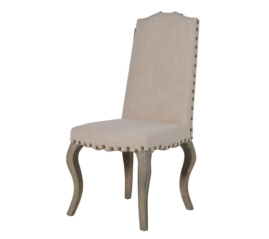 Dizajnová vidiecka jedálenská stolička Frontera s béžovým ľanovým poťahom a drevenými nohami 108cm