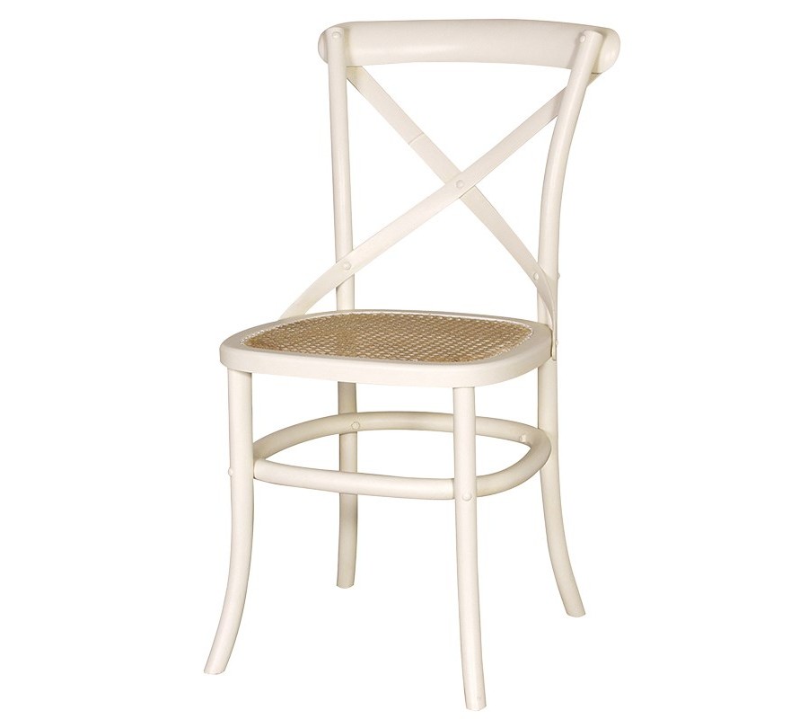 Štýlová vidiecka jedálenská stolička Country v bielej farbe predstavuje nadčasovú klasiku v rustikálnom a provensalskom štýle. Je vyrobená z masívneho brestového dreva. Konštrukcia stoličky je doplnená o kovovú výstuhu v tvare kríža na operadle, ktorá dodáva nábytku vizuálnu dynamiku a stabilitu. Sedadlo má poťah vypletaný vo vzore rybej kosti z prírodného vlákna.