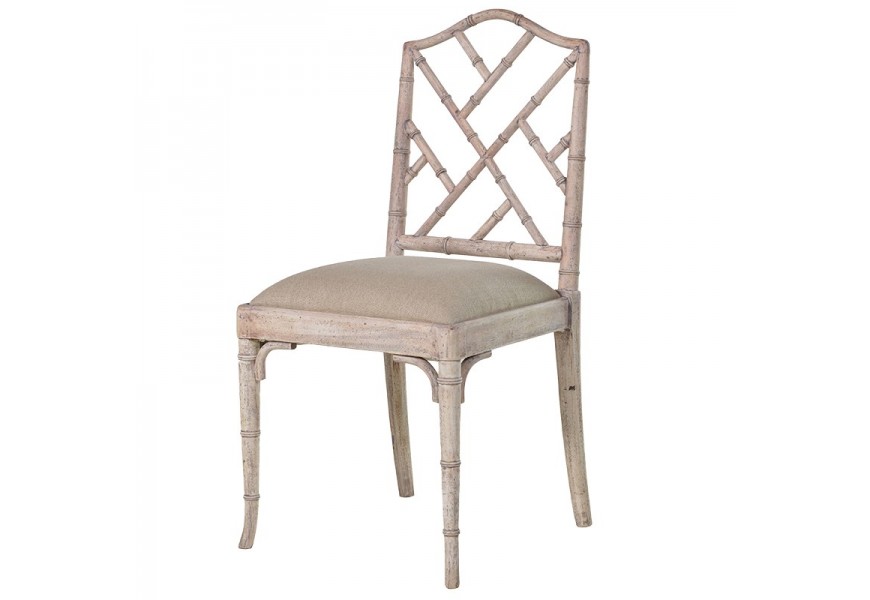 Štýlová vintage svetlo hnedá jedálenská stolička Nature s čalúneným ľanovým sedadlom s konštrukciou s bambusovým dizajnom 100 cm