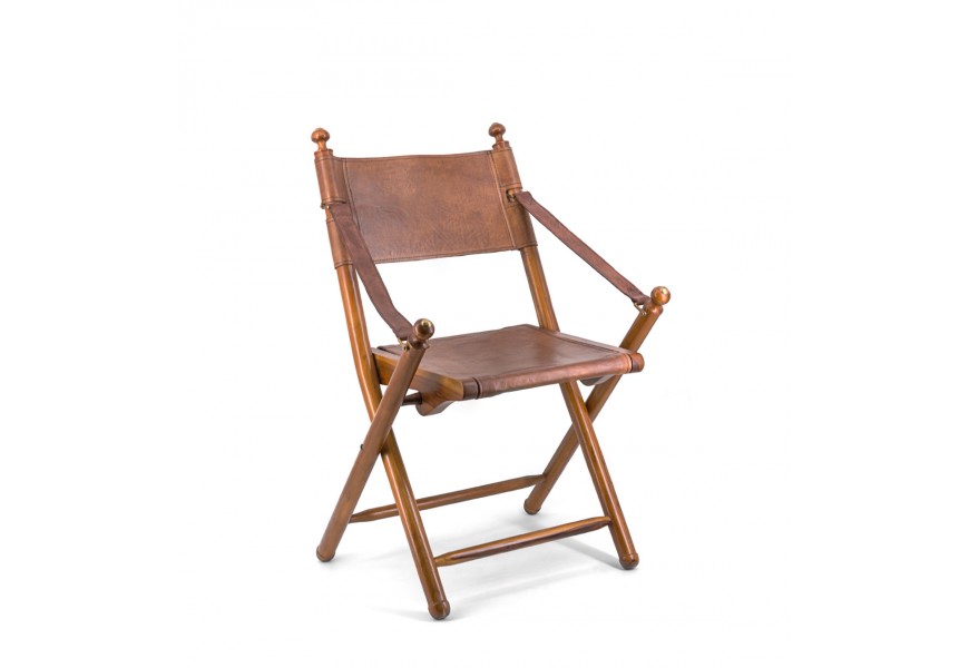 Luxusná skladacia stolička Tarlton z kože a dreva Poly piel v mahagónovej farbe je vďaka výberu použitých materiálov v kombinácii s jej tvarovým prevedením ideálnou voľbou predovšetkým do koloniálne zariadených priestorov. Vhodným doplnkom však bude taktiež v luxusných a svojských interiéroch ladených najmä v tmavých farbách.
