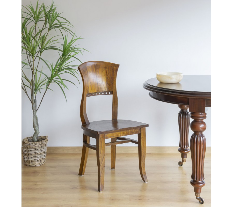 Luxusná jedálenská stolička Star je vkusným a elegantným doplnkom každej rustikálne či koloniálne ladenej jedálne, kuchyne alebo obývačky. Celodrevený vzhľad z masívu mindi k vám domov vnesie nádych prírody a príjemná teplá hnedá farba poľahky zapadne do svetlejších aj tmavších priestorov. Vyrezávanie a zaoblené tvary stoličky jej dodávajú unikátny rustikálny nádych. Stoličky Star odporúčame kombinovať s ďalším nábytkom z masívneho dreva a doplnkami v naturálnych farbách.