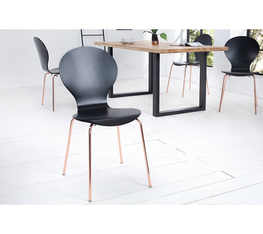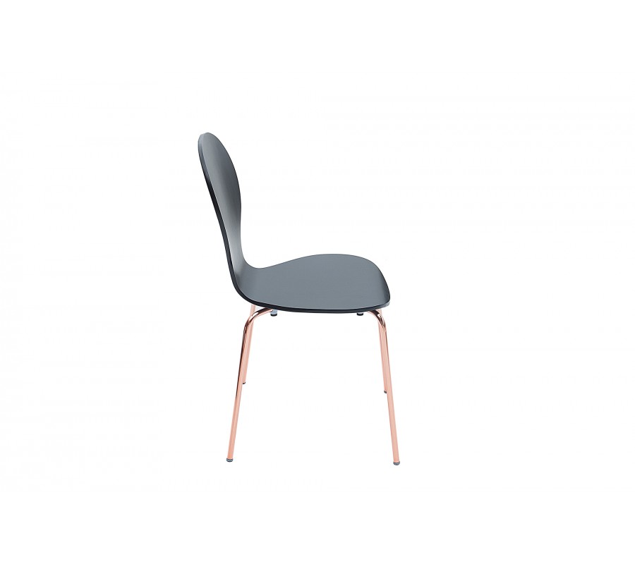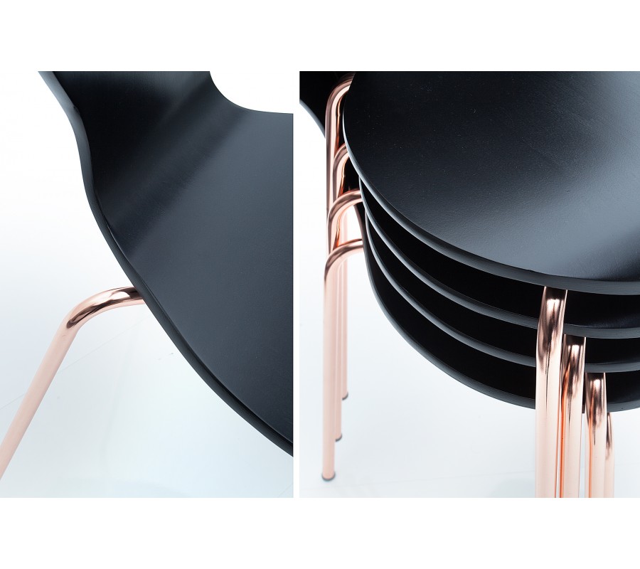 Štýlová moderná jedálenská stolička je absolútnou klasikou. Stolička môže byť použitá samostatne, či už v kuchyni, detskej izbe, jedálni, kancelárii, alebo dokonca aj na terase. Sedák a operadlo sú vyrobené z jedného kusu a tým je zaistené príjemné a pohodlné sedenie. Nohy stoličky sú vyrobené z kvalitného materiálu v medenej farbe.