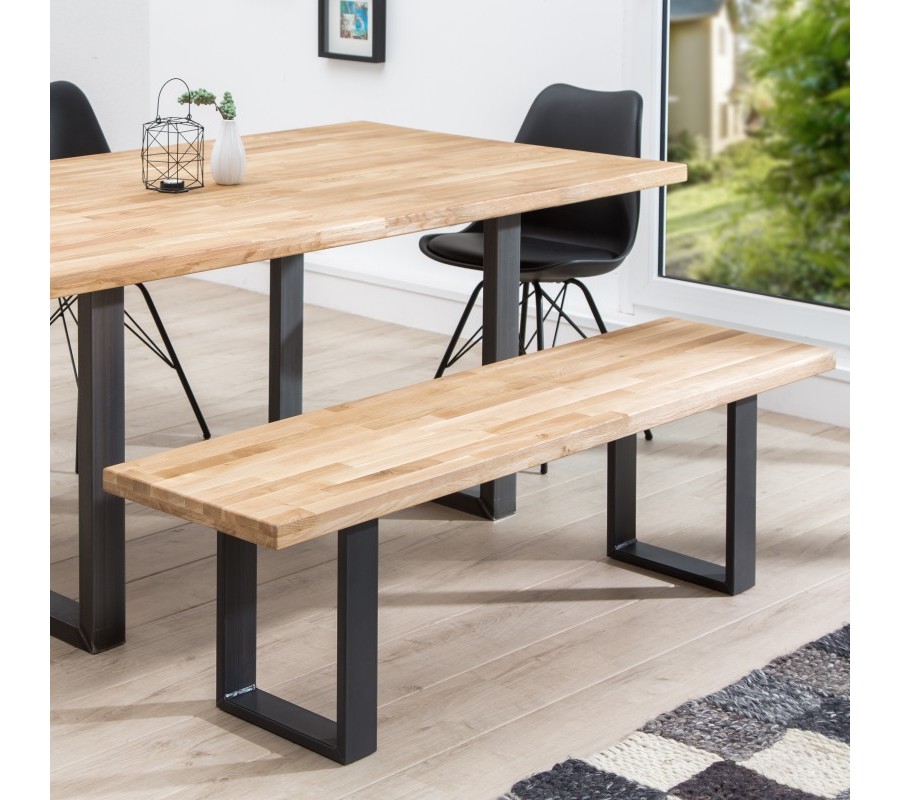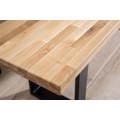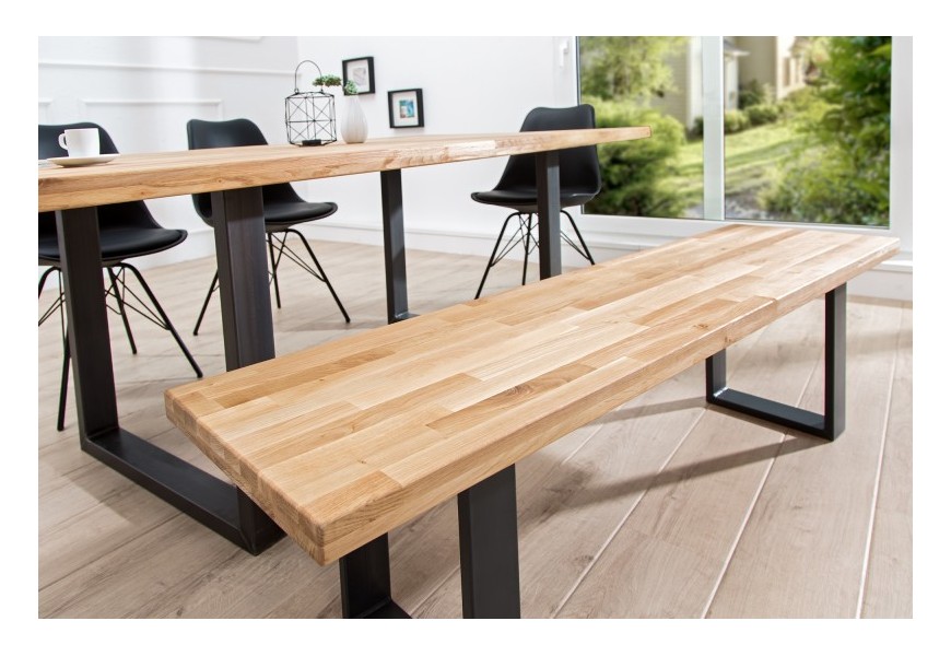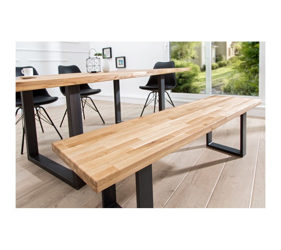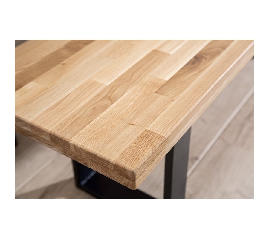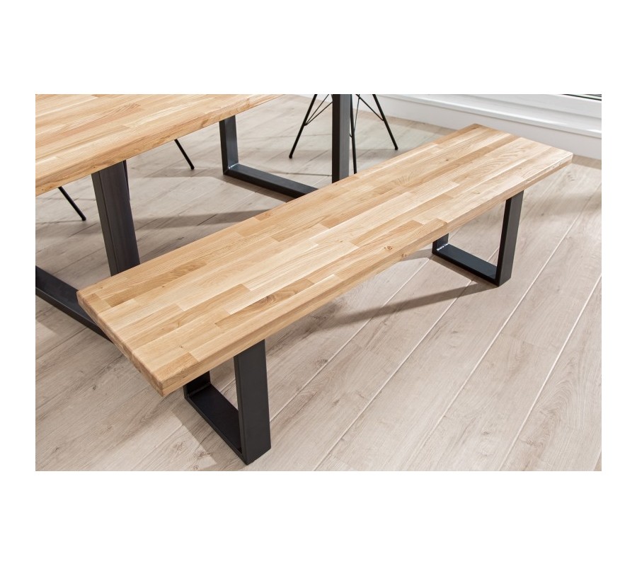 Dizajnová masívna lavica Wotan v dĺžke 160cm sa stane ozdobou každej modernej jedálne. Horná doska má vzhľad zlepovaného dreva rôznych farieb, čo vytvára zaujímavú štruktúru. Masívne kovové nohy zaručia vysokú stabilitu lavice. Hrúbka dosky: 40 mm, farba: prírodná, materiál: masívne drevo - dub, kov.