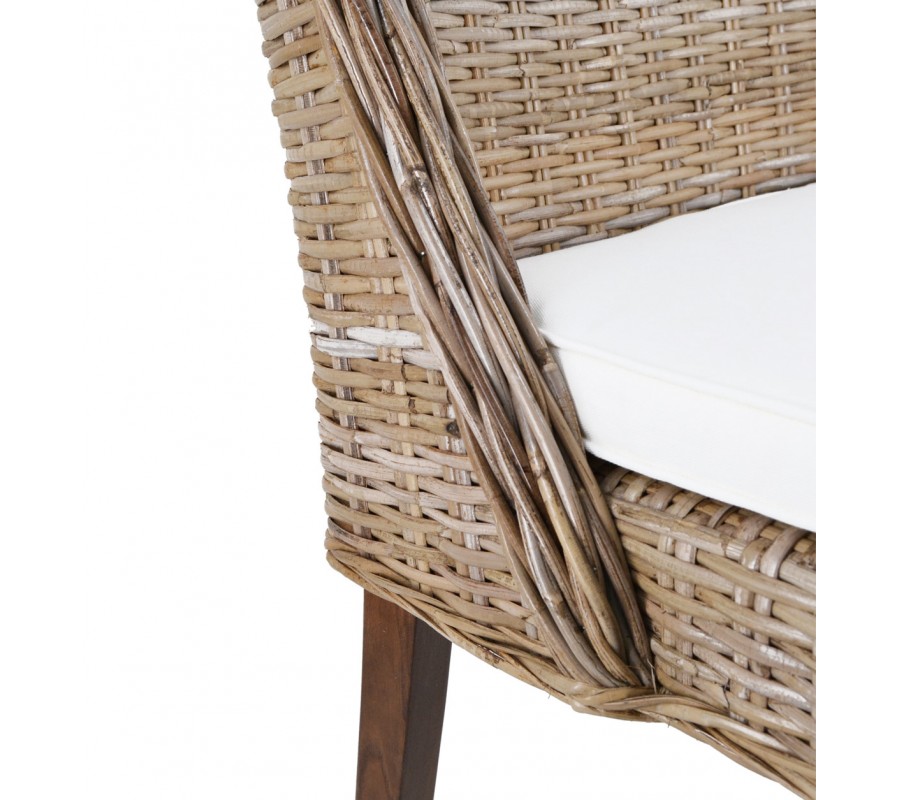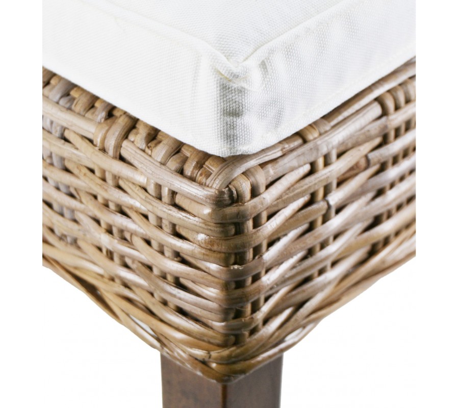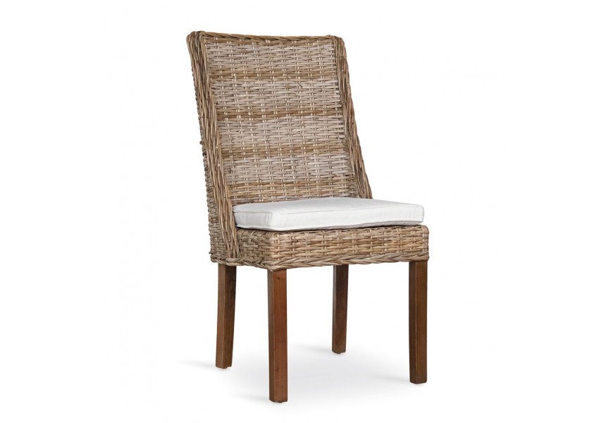 Štýlová stolička Rattan je vkusným a praktickým doplnkom, ktorý má v domácnosti široké využitie. Stoličky možno využiť v jedálni pri stolovaní, v pracovni, v obývačke či na záhrade alebo balkóne. Sedacia časť a operadlo sú vyrobené z ratanu, čo však robí stoličku jedinečnou sú nohy z masívneho dreva, ktoré s ratanom vytvárajú skutočne zaujímavú a originálnu kombináciu. Pre spríjemnenie vášho sedu je súčasťou aj biely vankúšik z textilu, ktorý taktiež príjemne ladí s hnedou farbou stoličky. Vďaka tejto univerzálnej farebnosti je možné stoličky Rattan poľahky doladiť do akéhokoľvek interiéru. Pre nádherný prírodný vzhľad odporúčame kombináciu s doplnkami v naturálnych farbách, živým rastlinstvom a masívnymi kúskami nábytku.