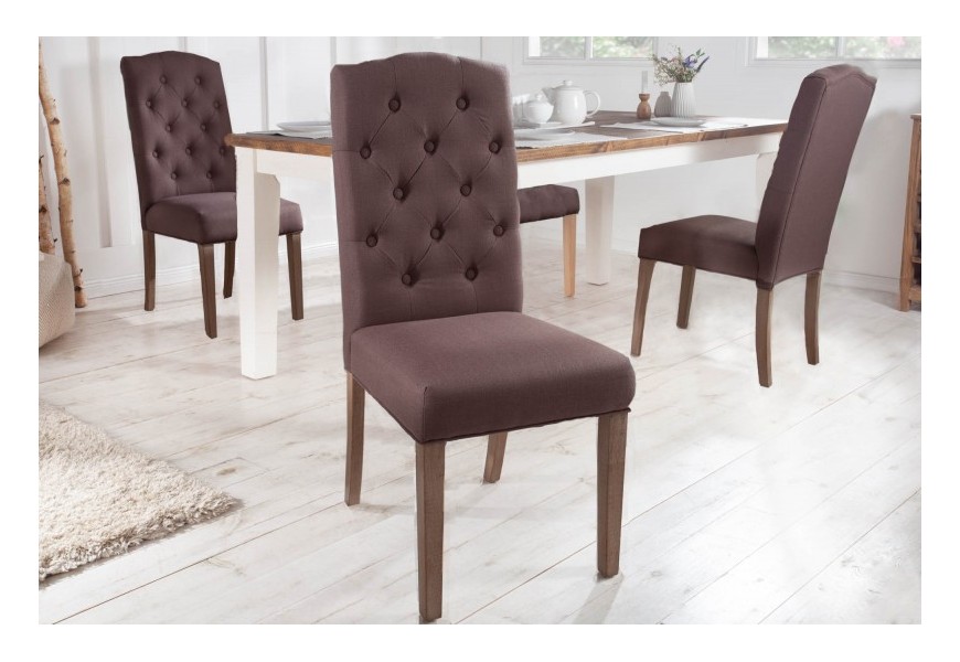 Vidiecka štýlová jedálenská stolička Silloth s hnedým čalúnením a chesterfield prešívaním 104cm