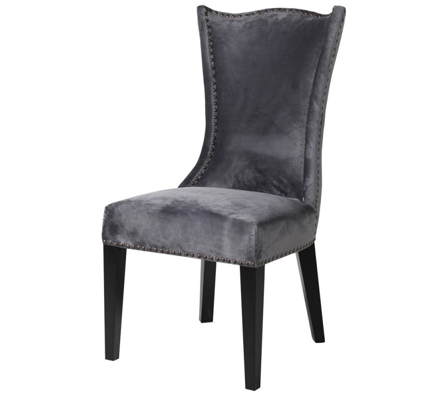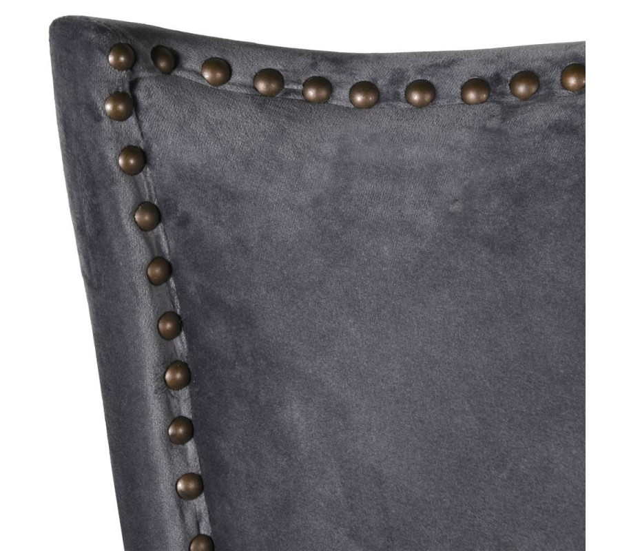 Luxusná jedálenská stolička Edrick v sivom zamatovom poťahu je zárukou kvality a pohodlia. Neutrálne sivé odtiene poťahu kopírujú nadčasový tvar operadla, ktoré tvarovo pripomína ušiak a typológiu zámockého štýlu. Čalúnenie je po svojom obvode doplnené dekoratívnymi klinčekmi v bronzovej farbe, ktorá sa opakuje aj na štýlovom klopadle operadla. Výška operadla je dostatočná pre pohodlné opretie hlavy a sed na stoličke Edrick sa tak stáva pohodlným aj počas dlhých stretnutí s rodinou či priateľmi. Okrem štýlových domácností sa stolička Edrick hodí aj do luxusných priestorov reštaurácii či reprezentatívnych priestorov firiem.