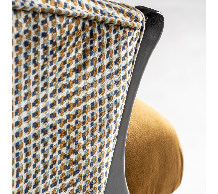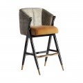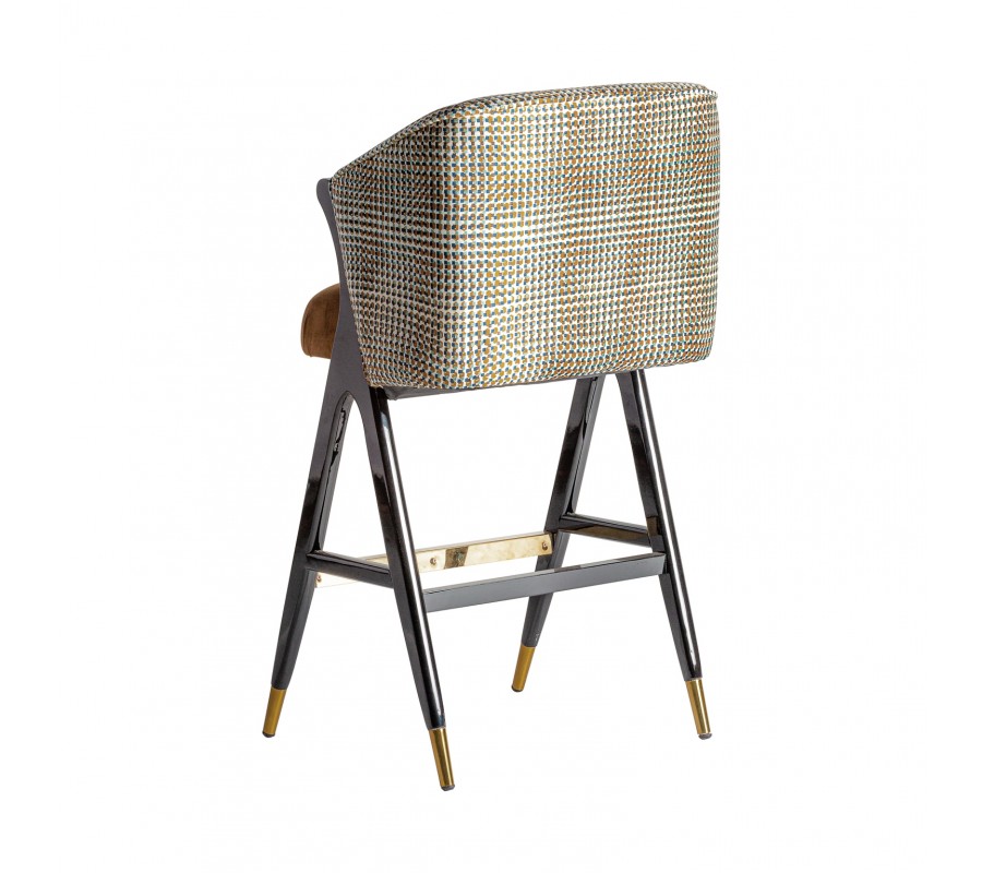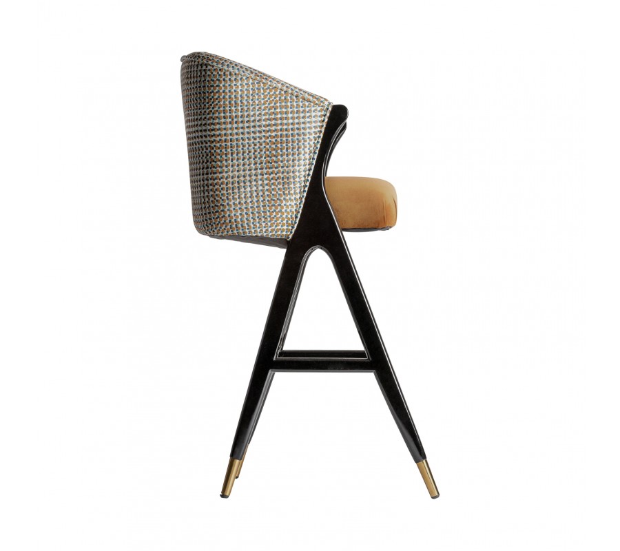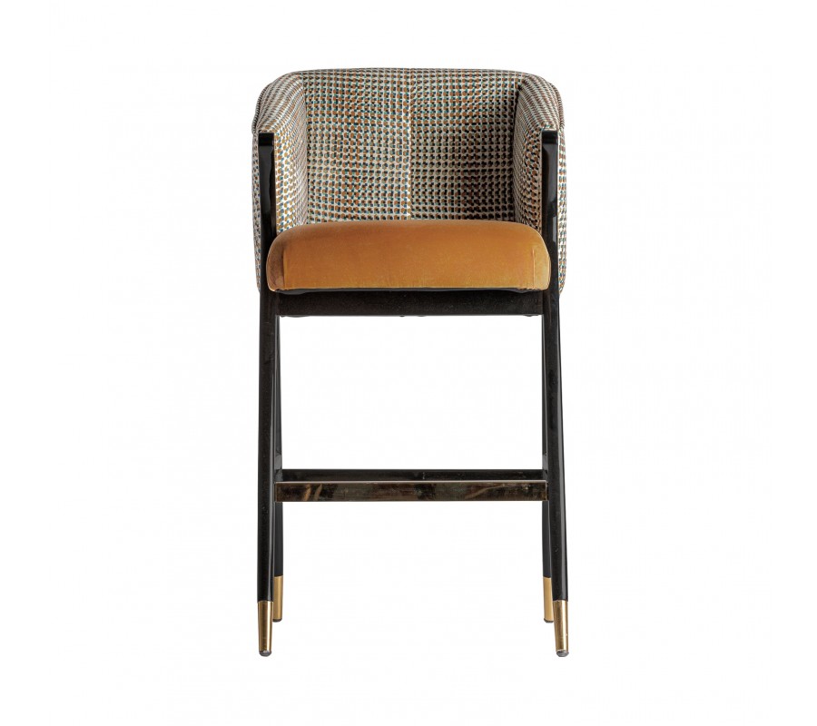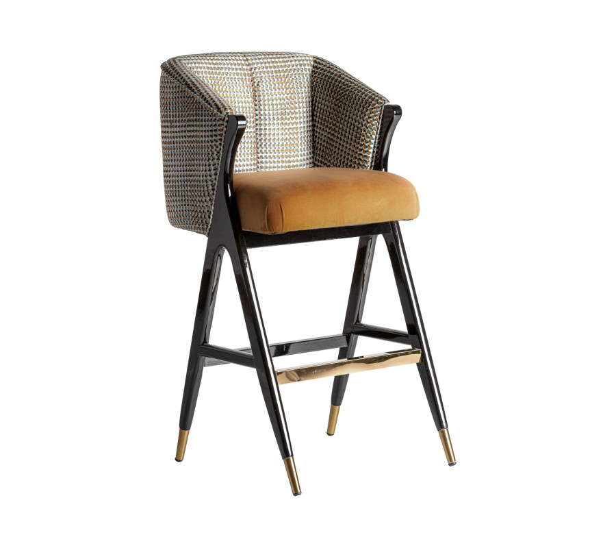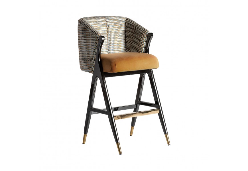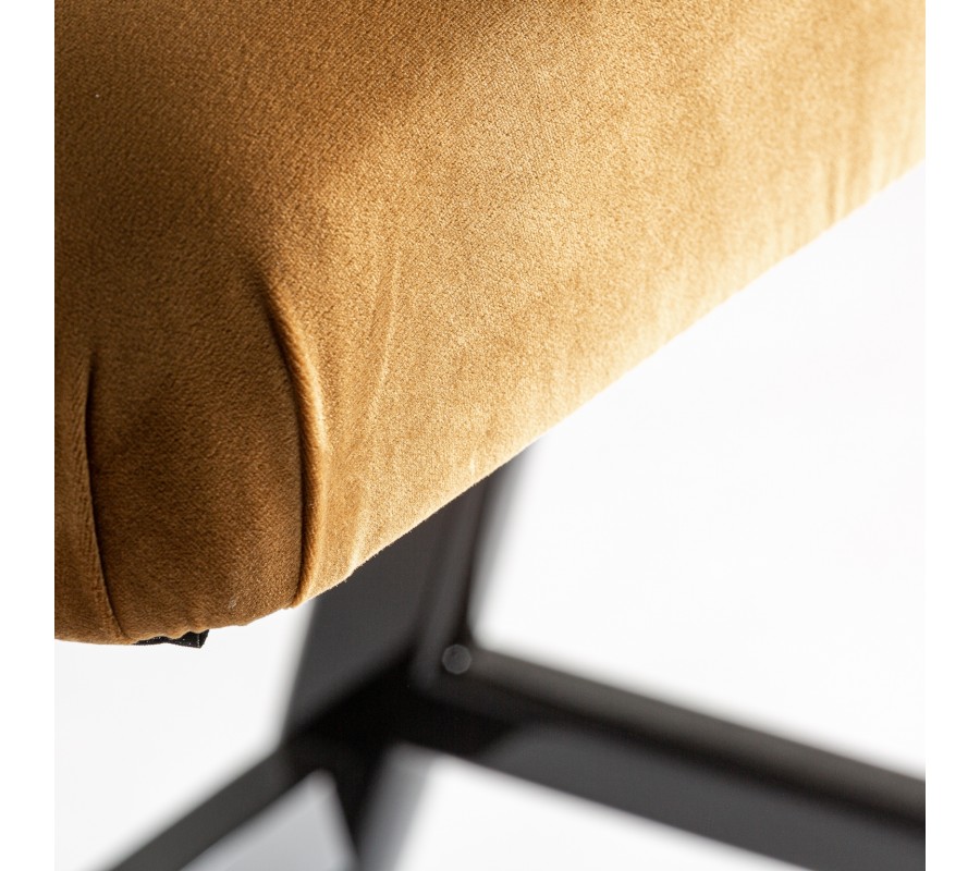 Luxusná vysoká barová stolička Brilon sa stane šperkom každého priestoru s prvkami Art-deco štýlu. Stabilitu stoličky zabezpečuje masívna konštrukcia v tmavom čiernom odtieni, ktorá sa kontrastne dopĺňa so zamatovým leskom jej poťahu. Horčicový poťah na sedadle je doplnený vzorovaným poťahom operadla s geometrickým Art-deco motívom, ktorý plynule prechádza do praktických opierok na ruky. Dizajn stoličky je doplnený rafinovaným detailom v podobe zlatých prvkov. Môžete ju kombinovať s barovými pultmi z masívneho dreva s exotickou kresbou, luxusnými kamennými povrchmi či prvkami z lesklého kovu. Stoličku Brilon odporúčame kombinovať s prvkami z našej rovnomennej kolekcie, v ktorej nájdete širokú ponuku produktov v rovnakom štýle.