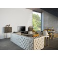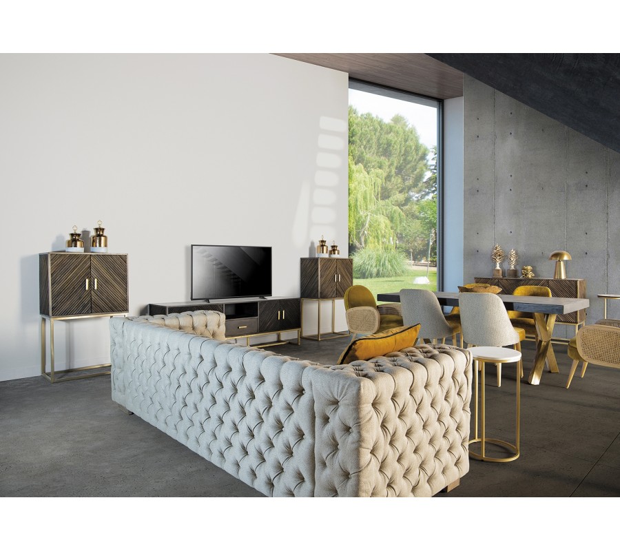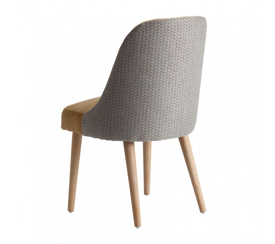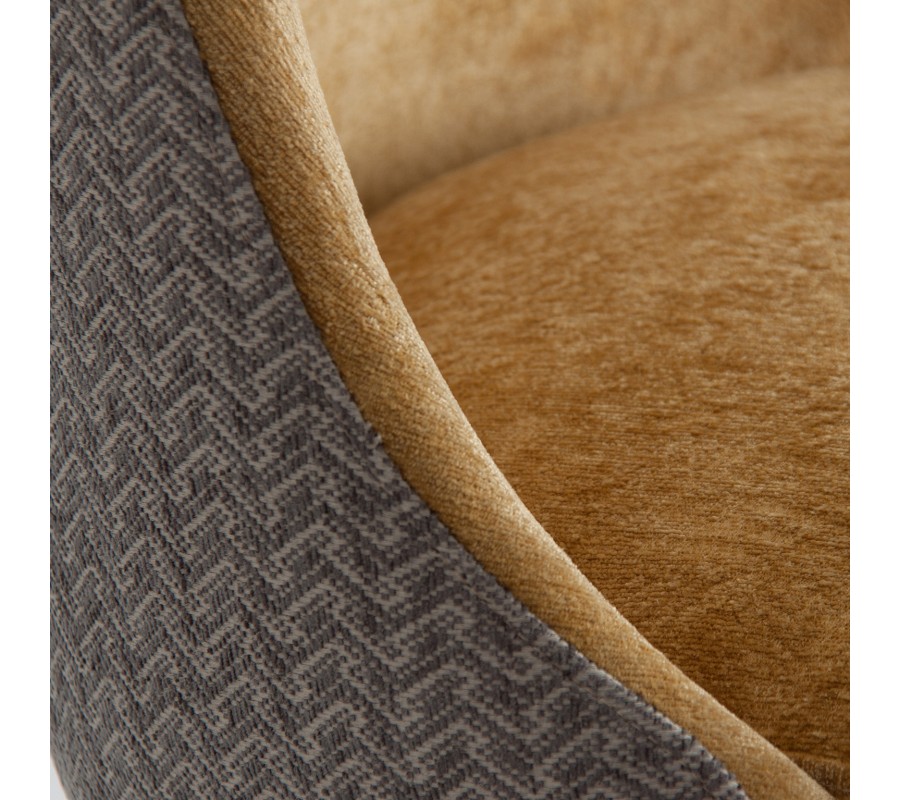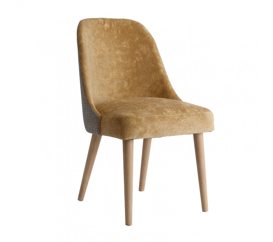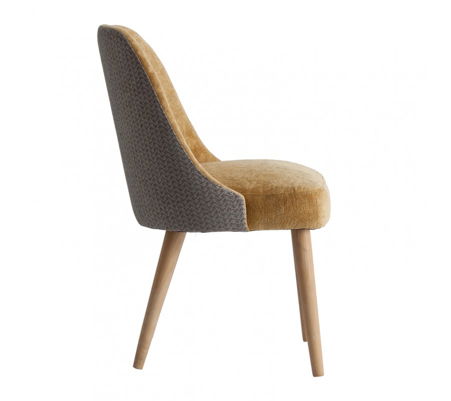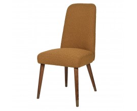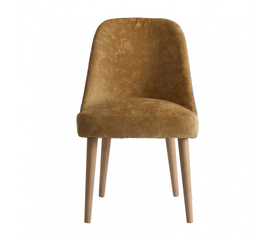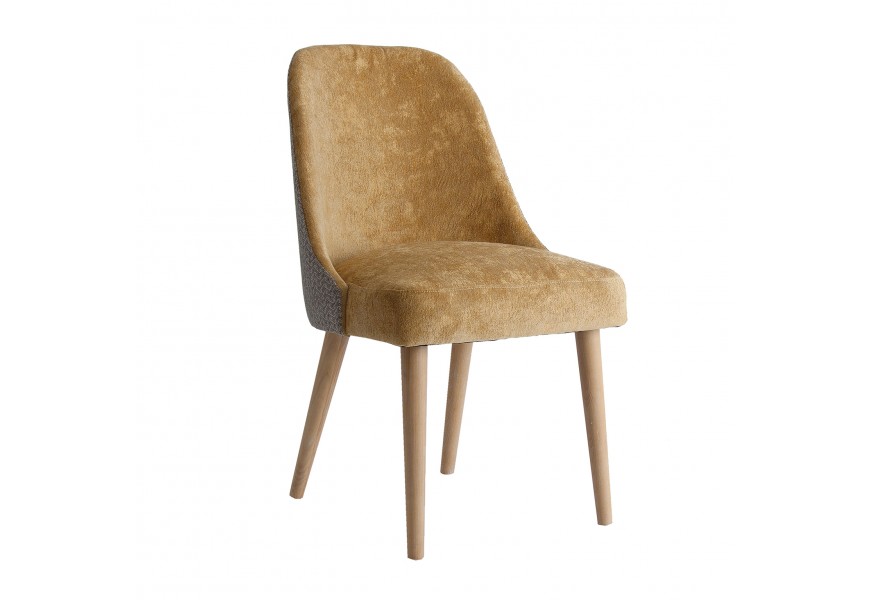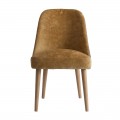 Luxusná čalúnená jedálenská stolička Lage je výnimočná príjemným zamatovým čalúnením na sedacej časti v hnedom horčicovom odtieni, ktorý je na zadnej strane operadla obohatený zaujímavým vzorom. Mäkké čalúnenie sedadla aj operadla je vykrojené do plynulej krivky, ktorá mu dodáva nestarnúci pôvab a eleganciu. Teplý odtieň sa nemusíte báť kombinovať ani s výraznými farbami v modrých, zelených či žltých odtieňoch. Jedálenská stolička Lage skvele doplní elegantný interiér zariadený dreveným nábytkom ale aj extravagantný priestor v Art-deco štýle, plný kovových odleskov a geometrických tvarov. Jedálenská stolička Lage dokonale doplní vašu jedáleň, spálňu či predsieň, vďaka výraznej elegancii a luxusu je vhodná aj do priestorov hotelov či klubov a podnikov. Odporúčame ju kombinovať s ďalšími prvkami z našej širokej ponuke produktov v Art-deco štýle.
