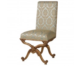 Baroková luxusná jedálenská stolička Roi Gilt s ornamentálnym poťahom v béžových odtieňoch so zlatými nohami 107cm
